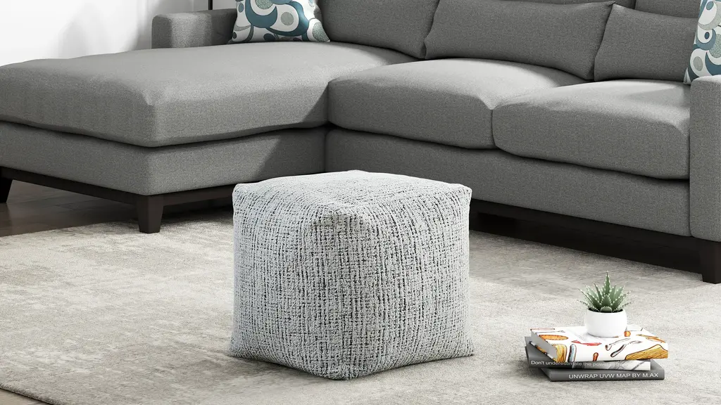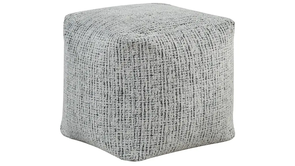 Whether the Omax Pouf serves to provide stylish accent to your home's decor, convenient seating when the need arises, or as perfect place to put up your feet, the square accent pouf's versatility of purpose makes it a convenient addition to your space. The pouf is covered in gradiated black and white chenille fabric upholstery.