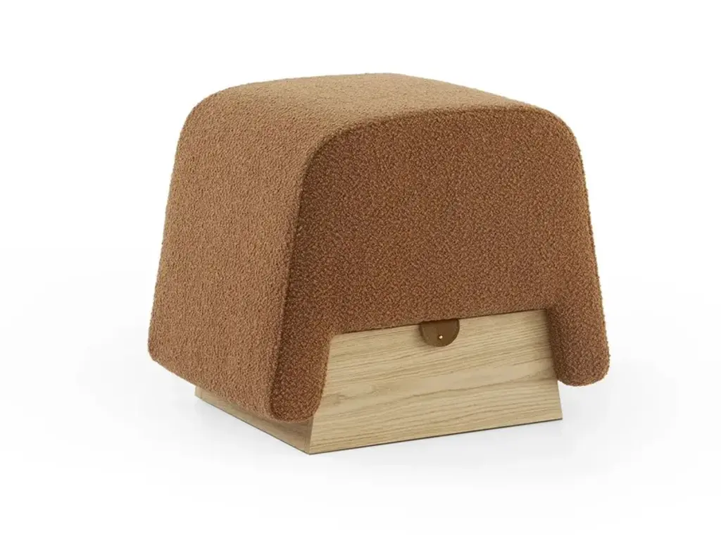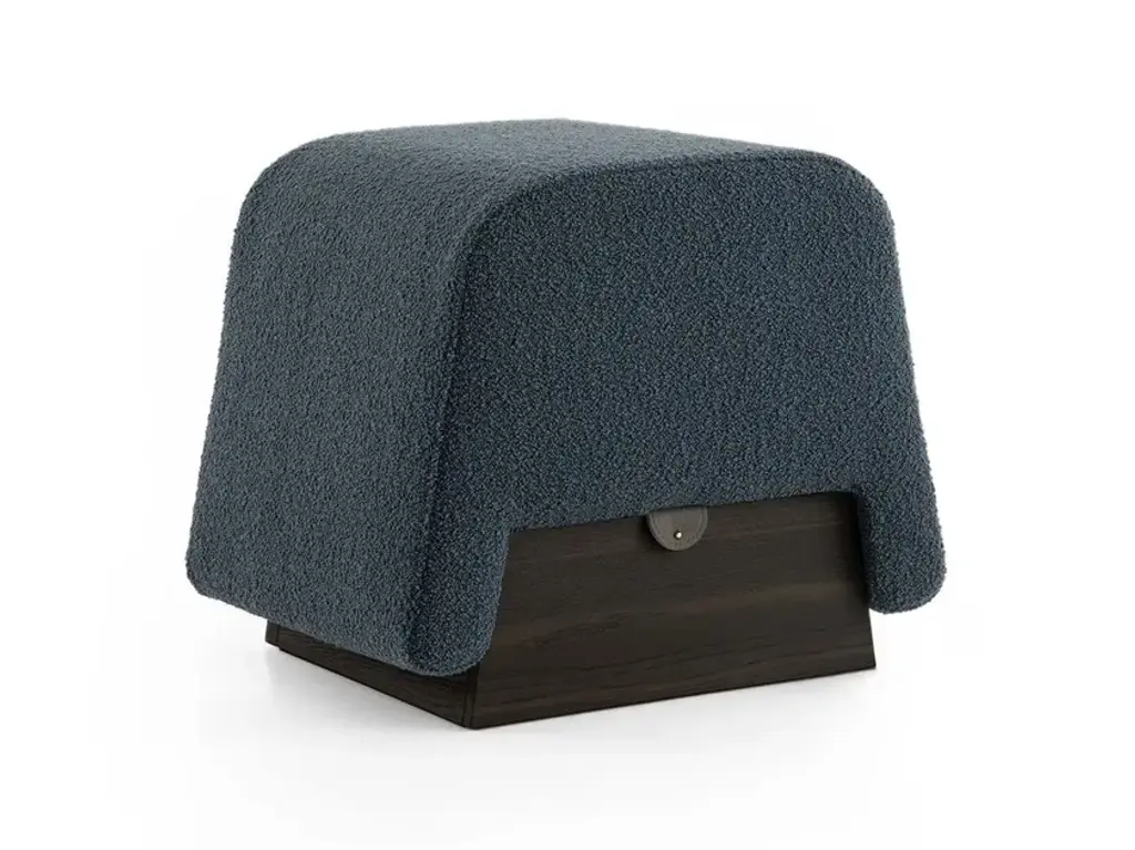 Onigiri is a pouf features high-density foam padding and a bouclé fabric upholstery, paired with an elegant leather closure strap. The structure includes a storage compartment made of MDF, finished with precious wood veneers. Each variant is distinguished by its unique color choices for the fabric, strap, and wood finish.HM.ONI.NC.B01.P13: Upholstered in bouclé fabric in Cipria Pink with a Cognac leather strap. The storage compartment is finished in Canaletto Walnut with Terra Diamond finish.HM.ONI.RL.B03.P09: Upholstered in bouclé fabric in Denim Blue with an Anthracite leather strap. The storage compartment is finished in Laguna Oak.HM.ONI.RN.B04.P13: Upholstered in bouclé fabric in Caramel with a Cognac leather strap. The storage compartment is finished in Natural Oak.HM.ONI.RN.B05.P09: Upholstered in bouclé fabric in Pearl Gray with an Anthracite leather strap. The storage compartment is finished in Natural Oak.The Enjoy Collection is Morica Design’s most sparkling, dynamic collection. The items are lively, inspired by nature, and find their soul in the pastel shades that blend and play with the wood in an original, fresh manner. The distinctive feature of Enjoy Collection is the use of color, declined in functional furnishings and contemporary mood. Modern and refined products made with high quality materials and handcrafted in Italy.