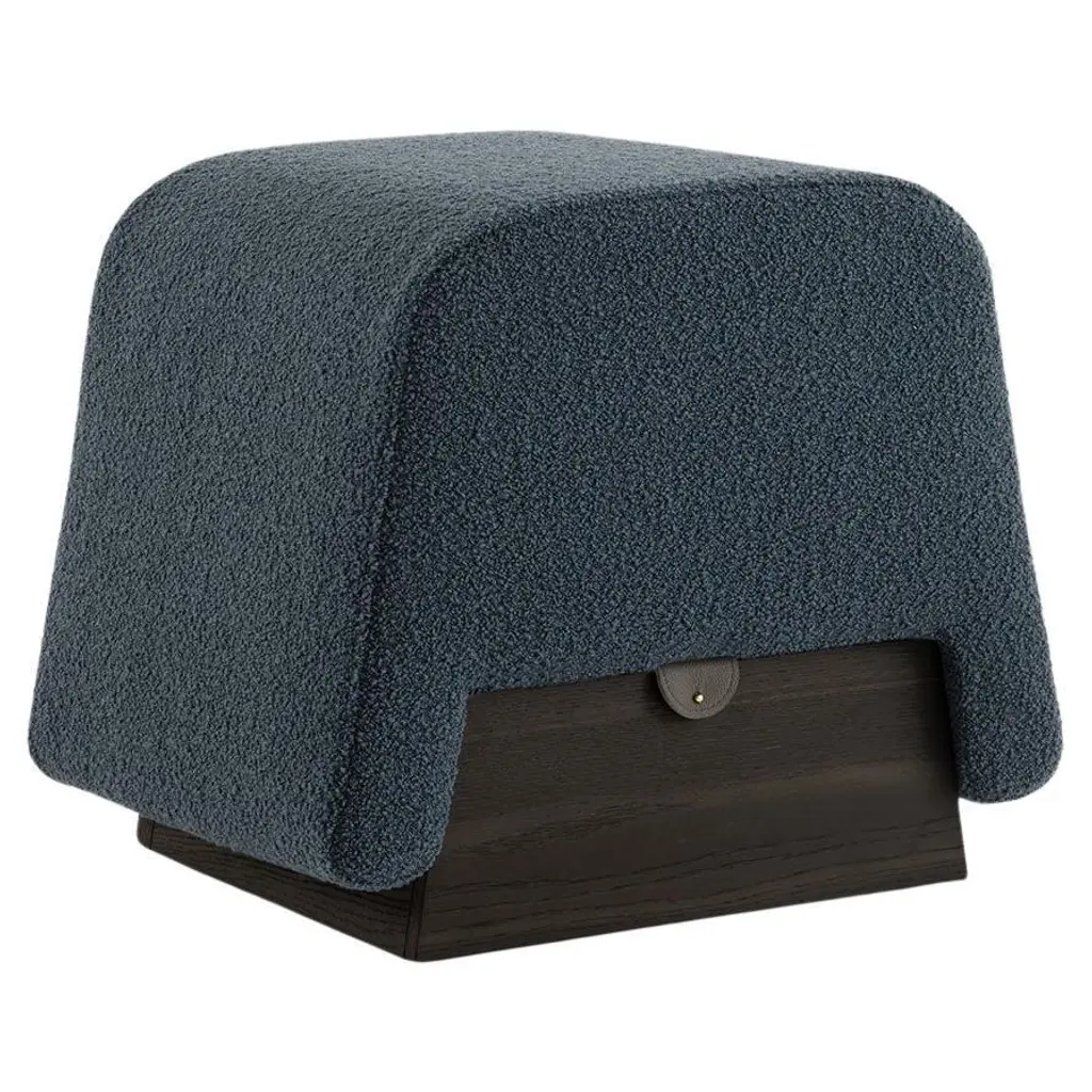 Onigiri pouf by morica design dimensions: d 40 x w 52 x h 43 cm. Materials: laguna oak, blue bouclé wool, anthracite leather. Pouf with high-density rubber padding, upholstered in bouclé wool fabric, with a genuine leather closure handle. Storage compartment in mdf veneered real wood. The spark of an idea began with three brothers, moreno, riccardo, and carlo, and the desire to provide genuine made in italy design furniture, delivered to customer homes directly from the factory. We guarantee our customers a controlled, certified supply chain and an excellent service that makes it easy for their items to be delivered directly to their homes. We are a fresh organization, full of ideas with the desire to make the world a better place, to change the way we consume by providing beauty, sustainability, and reliable service!