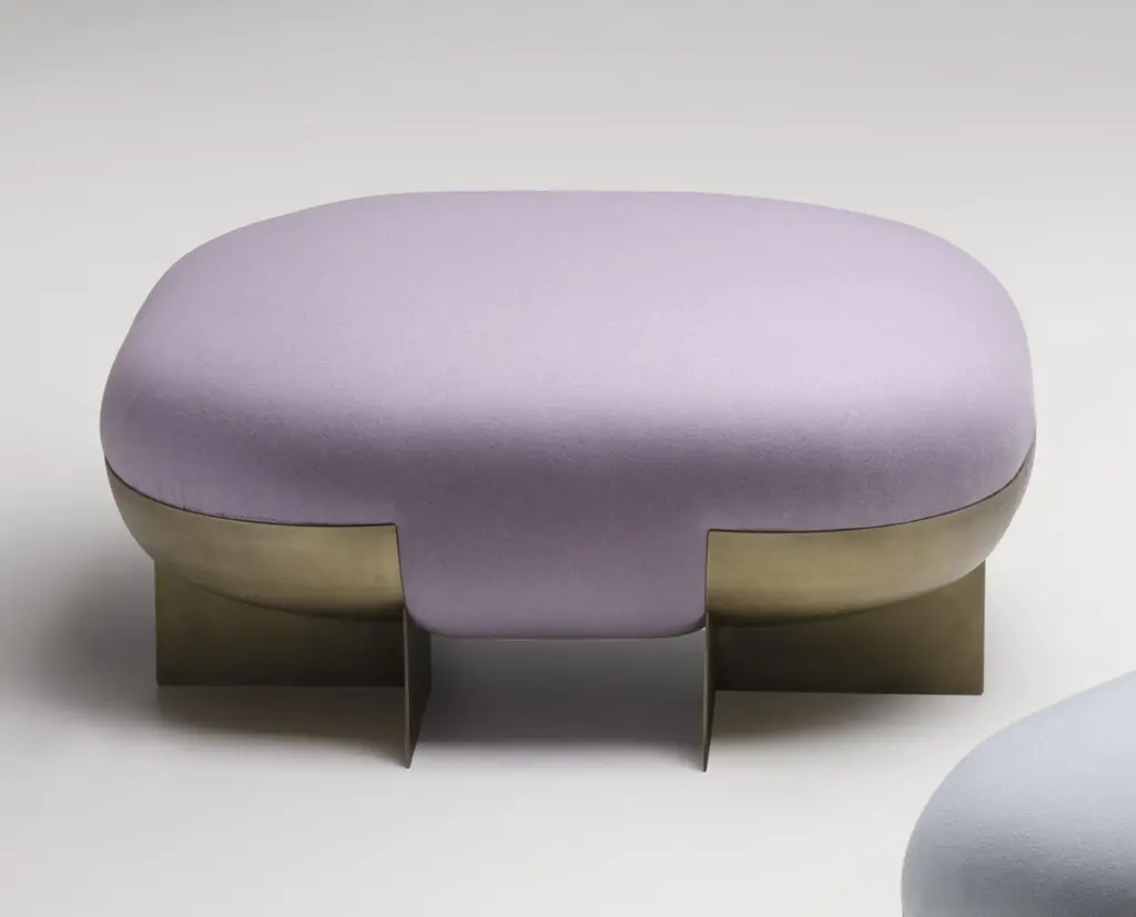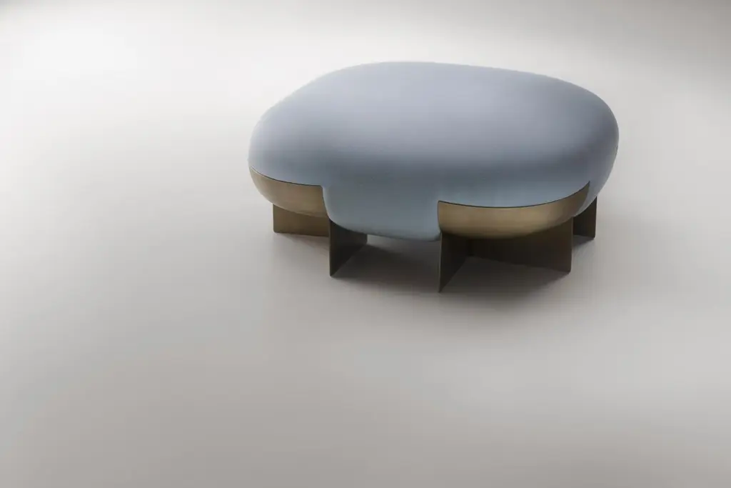 Ori Pouf by De CastelliDimensions: W 90 x D 90 x H 40 cmMaterials: Orbitale DeLabré Brass, FabricOther versions are available, please contact us for any request.Ori is a pouf-gem in which established elements swap their aesthetic guises and take on new roles. Set like a fine jewel, the detachable cushion with a removable fabric cover becomes the means and vehicle with which to exalt the brass structure, the true new star of this precious gem. The amplification of the concave form and the artisanal refinement of the finish make it possible for the four ‘wedge’ legs to go beyond the confines of functionality and, like a diamond, become the catalysts of attention.DE CASTELLI“HARD COUTURE”Faithful to its decision to reinstate the special role of metal in design and experimentation, De Castelli infuses artisan ideas and workmanship into industrial processes, leading to entirely original results. The encounter with design inspires an approach to materials founded upon respect for their potential, be it hidden or obvious, which emerges slowly in a collection of pieces that, despite being part of a series, remain unique.Unique not only for the hand that has created them, but also for the singular cultural path that focuses on the aesthetic (and not just practical) value of the primordial material with which De Castelli shapes living spaces.A BESPOKE APPROACHEach object, even in the repetition of form, is a creative act in and of itself, one that incorporates a heritage of constantly-evolving expertise and research. The equation that relegates ‘cold’ metals to the margins of furnishing projects is thus overturned, bringing iron, brass and copper, in their infinite variations and finishes, to the centre of an entirely renewed stage, allowing them to finally shine with their own light.SUSTAINABILITYDe Castelli has always been committed to making the entire production cycle increasingly sustainable, aware that metal, the material with which its business identifies itself, is precious and must be treated with care, without waste.PEOPLE FIRSTThe wide spaces of the De Castelli headquarters in Crocetta del Montello (TV) allow those who work to enjoy environments where order, cleanliness and safety are always maintained and guaranteed. An attitude of attention and respect for people that has led to the shared ethical code.