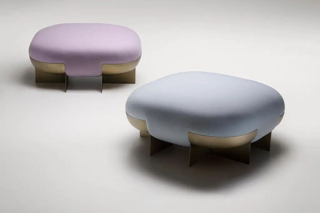 Ori Pouf by De CastelliDimensions: W 90 x D 90 x H 40 cmMaterials: Orbitale DeLabré Brass, FabricOther versions are available, please contact us for any request.Ori is a pouf-gem in which established elements swap their aesthetic guises and take on new roles. Set like a fine jewel, the detachable cushion with a removable fabric cover becomes the means and vehicle with which to exalt the brass structure, the true new star of this precious gem. The amplification of the concave form and the artisanal refinement of the finish make it possible for the four ‘wedge’ legs to go beyond the confines of functionality and, like a diamond, become the catalysts of attention.DE CASTELLI“HARD COUTURE”Faithful to its decision to reinstate the special role of metal in design and experimentation, De Castelli infuses artisan ideas and workmanship into industrial processes, leading to entirely original results. The encounter with design inspires an approach to materials founded upon respect for their potential, be it hidden or obvious, which emerges slowly in a collection of pieces that, despite being part of a series, remain unique.Unique not only for the hand that has created them, but also for the singular cultural path that focuses on the aesthetic (and not just practical) value of the primordial material with which De Castelli shapes living spaces.A BESPOKE APPROACHEach object, even in the repetition of form, is a creative act in and of itself, one that incorporates a heritage of constantly-evolving expertise and research. The equation that relegates ‘cold’ metals to the margins of furnishing projects is thus overturned, bringing iron, brass and copper, in their infinite variations and finishes, to the centre of an entirely renewed stage, allowing them to finally shine with their own light.SUSTAINABILITYDe Castelli has always been committed to making the entire production cycle increasingly sustainable, aware that metal, the material with which its business identifies itself, is precious and must be treated with care, without waste.PEOPLE FIRSTThe wide spaces of the De Castelli headquarters in Crocetta del Montello (TV) allow those who work to enjoy environments where order, cleanliness and safety are always maintained and guaranteed. An attitude of attention and respect for people that has led to the shared ethical code.