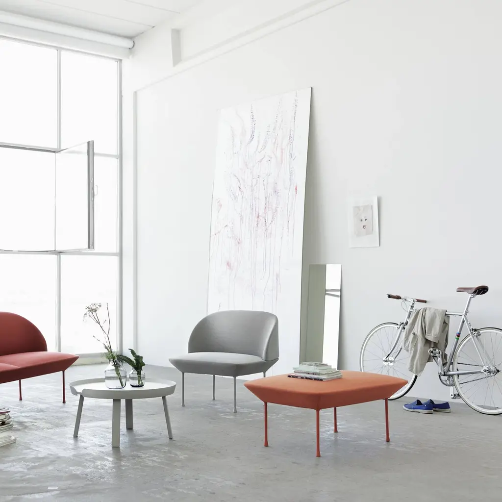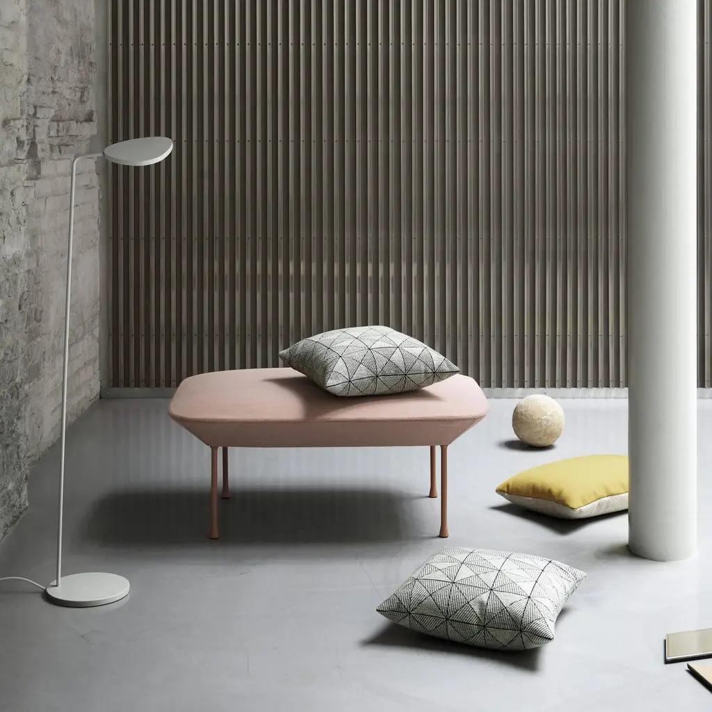 As seating or footrest, this sleek ottoman with its linear color-matching aluminum legs, fits the spare and luxe attitude envisioned by Oslo-based designers Torbjørn Anderssen and Espen Voll for the seating collection named after their modern hometown. A robust steel frame is concealed in its visual lightness, a feature of the Oslo series, which includes a sofa, chair and bench. Cofounders of the seminal Norway Says, Torbjørn and Espen have continued to break ground under their eponymous studio, extending the "Nordic touch" through collaborators such as Muuto, the Danish house producing the Oslo Collection.
