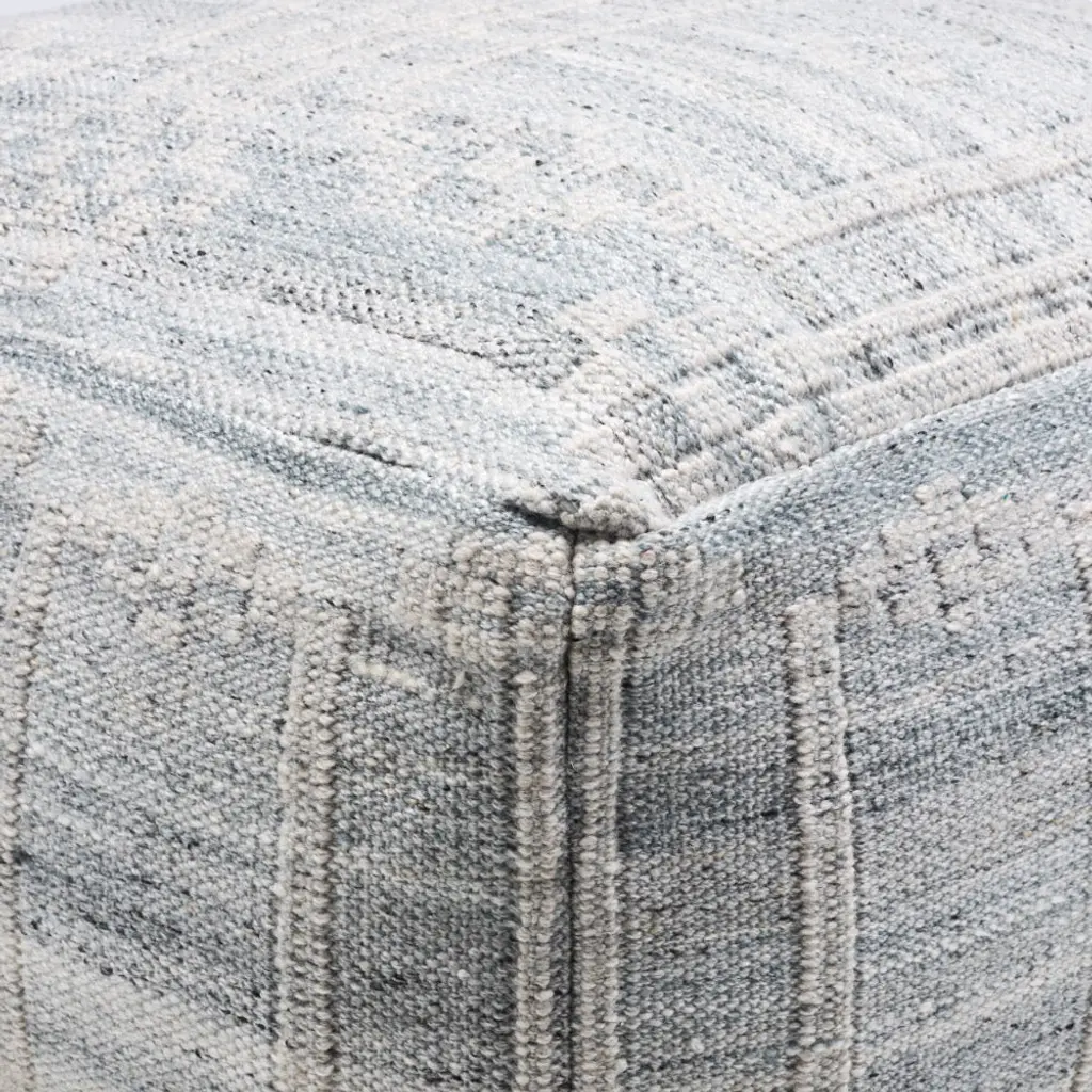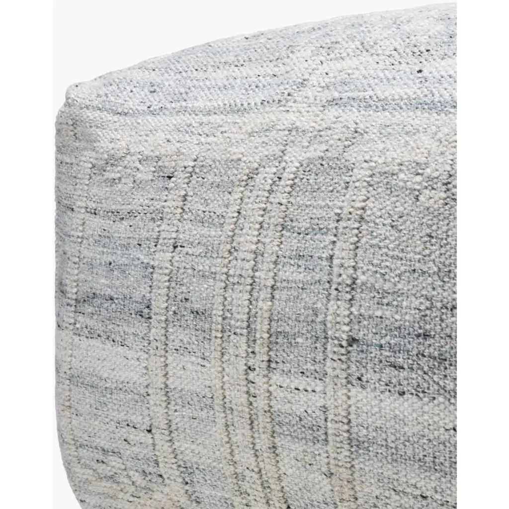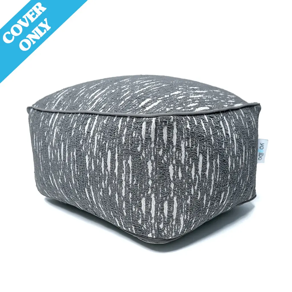 Get cozy outdoors with our woven pouf, featuring soft hues of gray in varying shades. The durable fabric cover + polybead fill provide comfort + support.