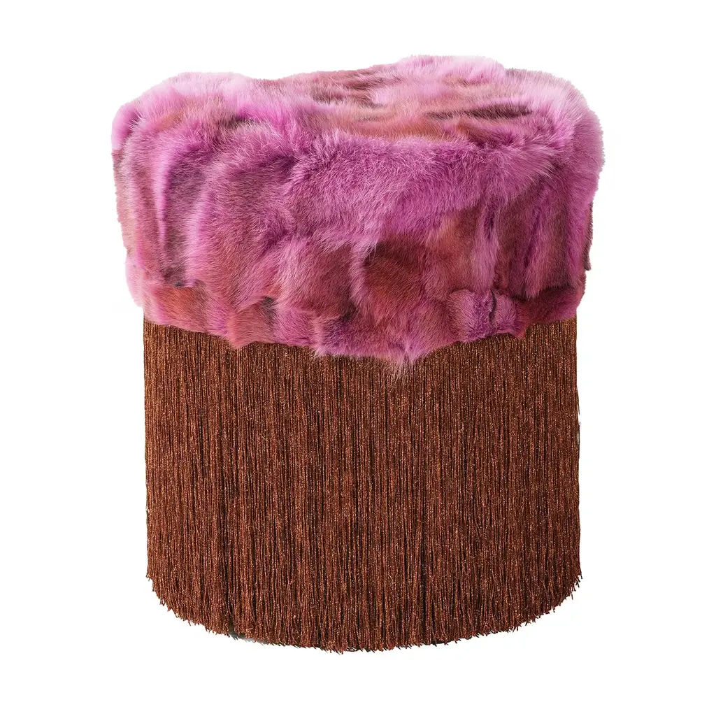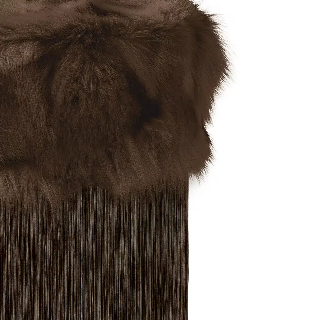 The Chocolate Brown Coyote Fur Pouf embodies an exclusive fusion of elegance and artisanal craftsmanship. This luxurious pouf is meticulously crafted in a warm, soft patchwork of coyote fur, accented by shimmering brown lurex fringes that add a playful yet sophisticated touch. Resting on a solid beechwood structure and legs, its compact dimensions (D40 × H46 cm) offer both visual richness and functional versatility, adding a distinctive touch of contemporary elegance to refined interiors. Each bespoke piece is stamped on the bottom of the pouf’s lining and personally signed, numbered, and dated by the designer.