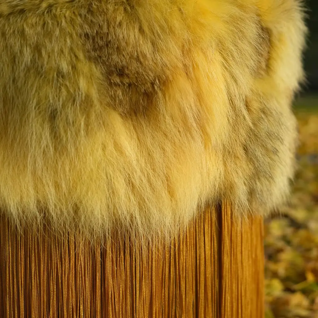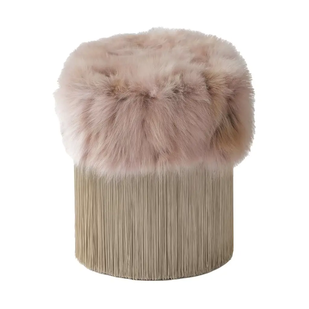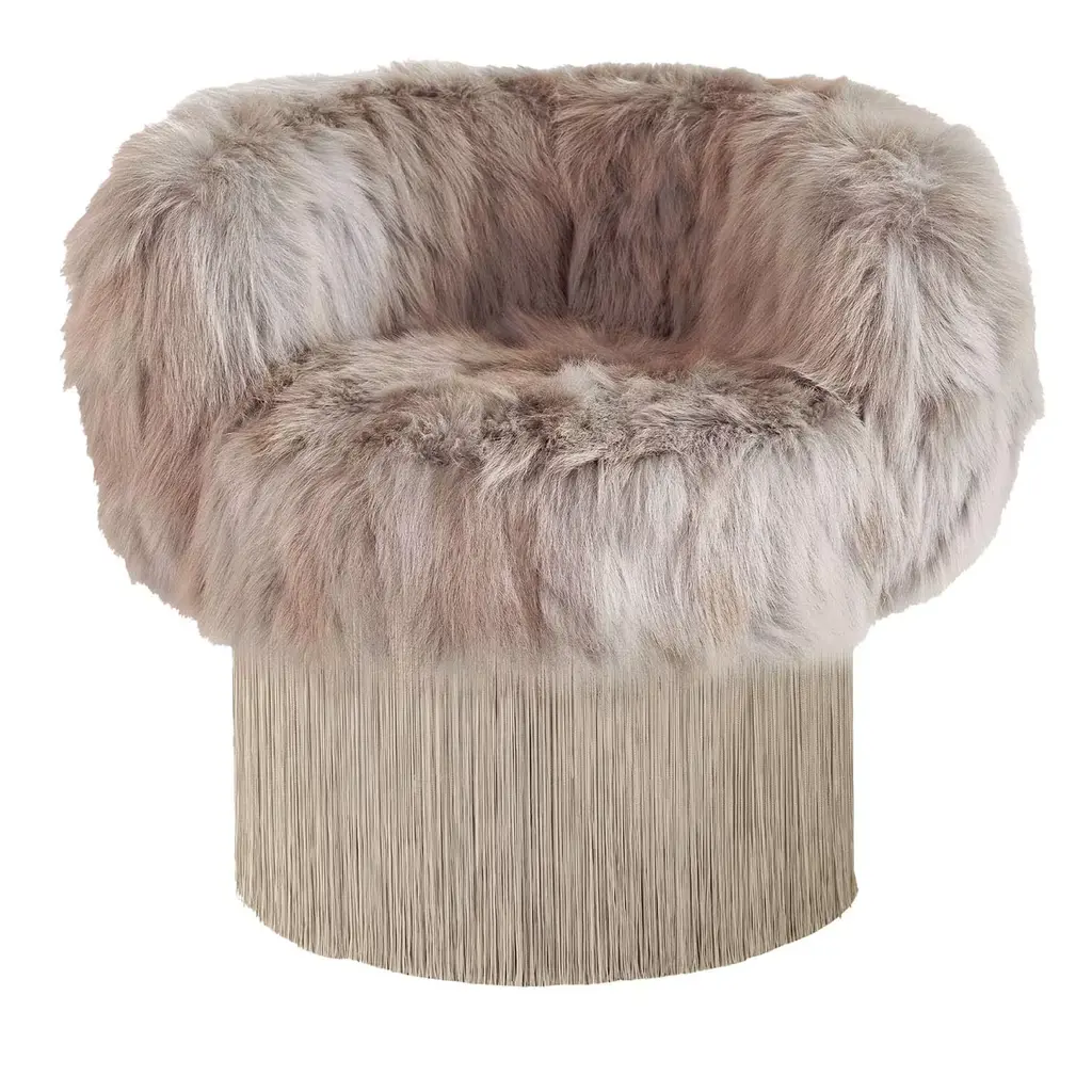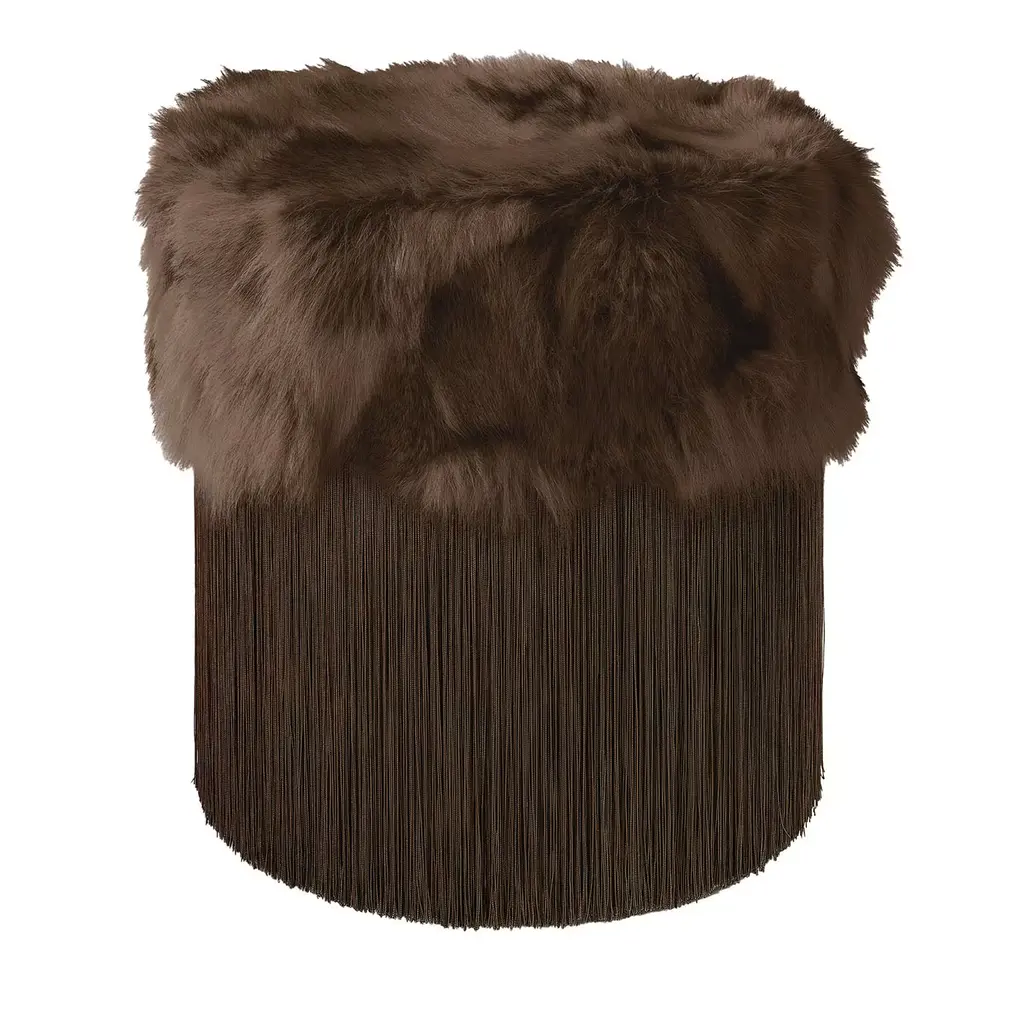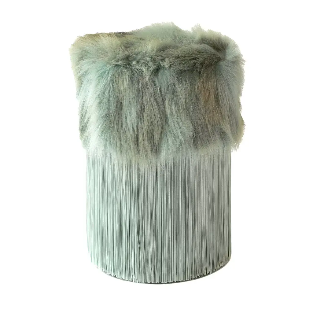 Lorenza Bozzoli Couture presents a limited-edition collection characterized by an extremely soft design, eclectic and distinctly retro. The new Fur Collection offers the Couture iconic pieces in a furry version with colours inspired by the seventies and sophisticated fur upholstery that emphasize the enveloping and smooth shapes for a cocoon effect. Pouf in patchwork of yellow coyote fur, warm and soft, with yellow fringes. Structure and legs in beech wood. Limited edition of 10 pieces. Each bespoke piece is stamped on the bottom of the pouf’s lining and personally signed, numbered, and dated by designer.