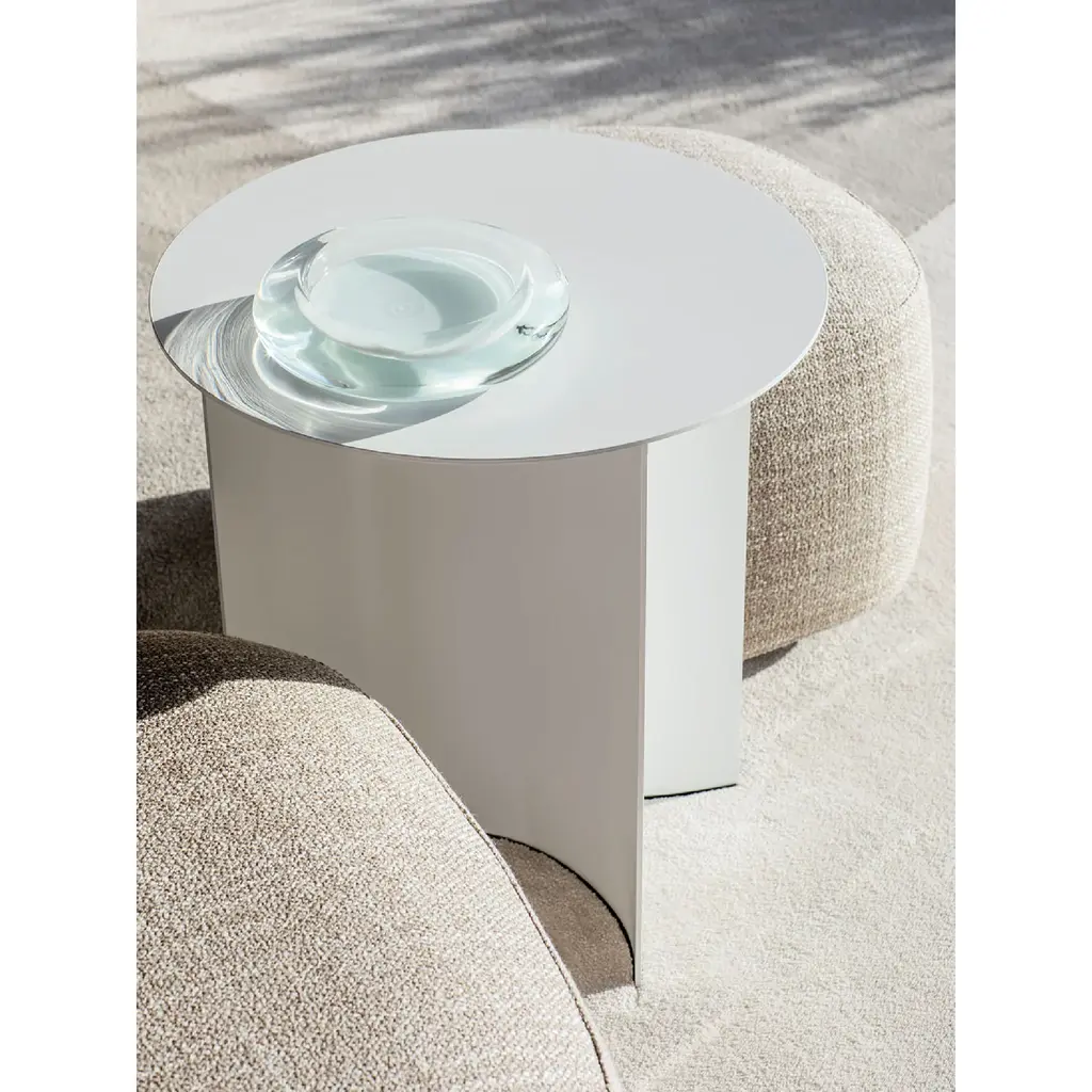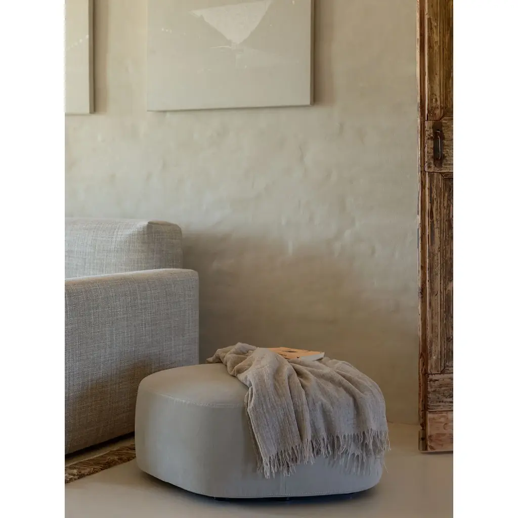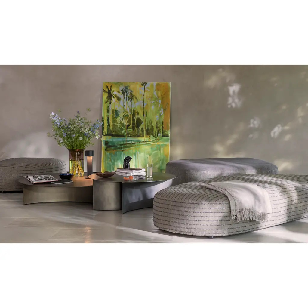 Introducing the Flou Moon Round Padded Table Pouf, a luxurious addition to any room. With its eye-catching asymmetrical stitching and variety of diameters and fabrics, this pouf is both functional and stylish. Accessorize with detachable trays for a stable surface, or use the cleverly-designed metal tray for added versatility. The perfect blend of form and function, this pouf is a must-have for any sophisticated space.