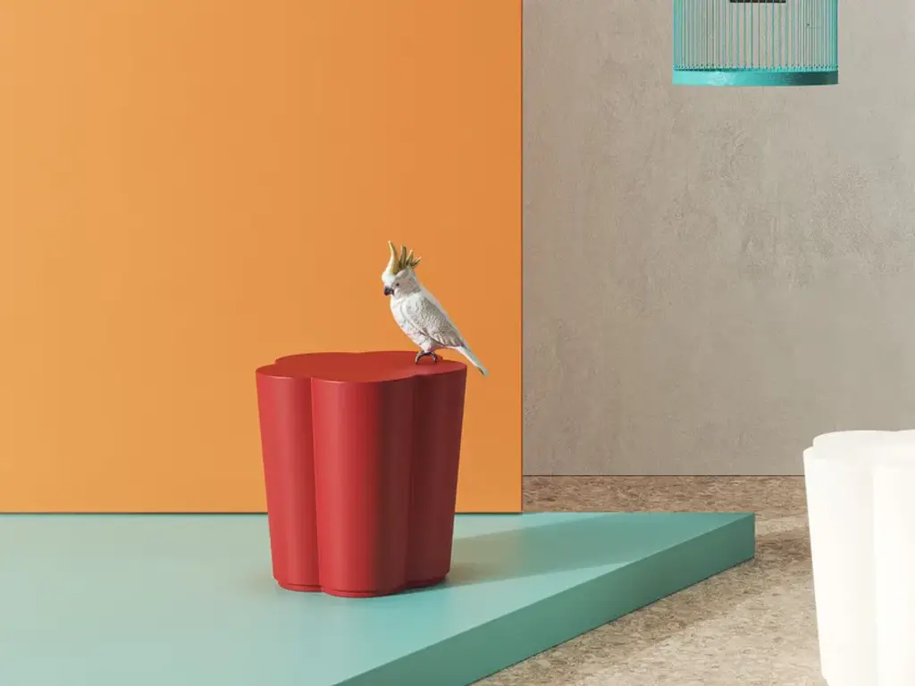 Pepper is a polyvalent and iconic furniture, that can transform itself both in a handy coffee-table, a ‘curvy’ lamp and a comfortable stool. Its eccentric structure, composed by the union of five ‘cone-like’ elements, reminds the shape of a pepper, and makes it an eclectic, fresh-looking furnishing. Pepper is made of polyethylene and it’s perfect to furnish both interior and outdoor living spaces.Materials: coloured polyethylene;Versions: polyethylene – natural colour with illuminating system;
