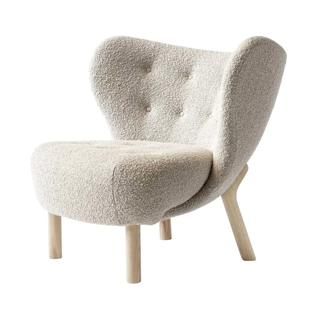 Initially introduced back in 1938, Petra won instant praise at the Copenhagen Cabinetmakers Guild Exhibition, subsequently winning awards at exhibits in New York and Berlin. It's one of just a few designs by architect Viggo Boesen, who became associated with Denmark's signature design aesthetic in the 1930s called funkis style. Distinguished by a softer, more abundant, organic aesthetic that challenged the minimalistic approach of Bauhaus. Low to the ground, open and embracing, it embodies the essence of a lounge chair, allowing for all kinds of seating positions in any cozy setting imaginable. A lot of work has gone into ensuring the utmost comfort, from the seat to the upholstery. Respecting Boesen's love of natural materials, the legs of the chair have been crafted in oak or walnut. The result is an endearing lounge chair that beckons you to stay.