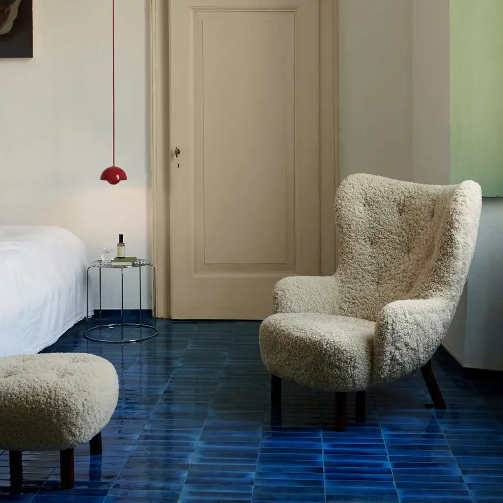 Initially introduced back in 1938, Petra won instant praise at the Copenhagen Cabinetmakers Guild Exhibition, subsequently winning awards at exhibits in New York and Berlin. It's one of just a few designs by architect Viggo Boesen, who became associated with Denmark's signature design aesthetic in the 1930s called funkis style. Distinguished by a softer, more abundant, organic aesthetic that challenged the minimalistic approach of Bauhaus. Low to the ground, open and embracing, it embodies the essence of a lounge chair, allowing for all kinds of seating positions in any cozy setting imaginable. A lot of work has gone into ensuring the utmost comfort, from the seat to the upholstery. Respecting Boesen's love of natural materials, the legs of the chair have been crafted in oak or walnut. The result is an endearing lounge chair that beckons you to stay.