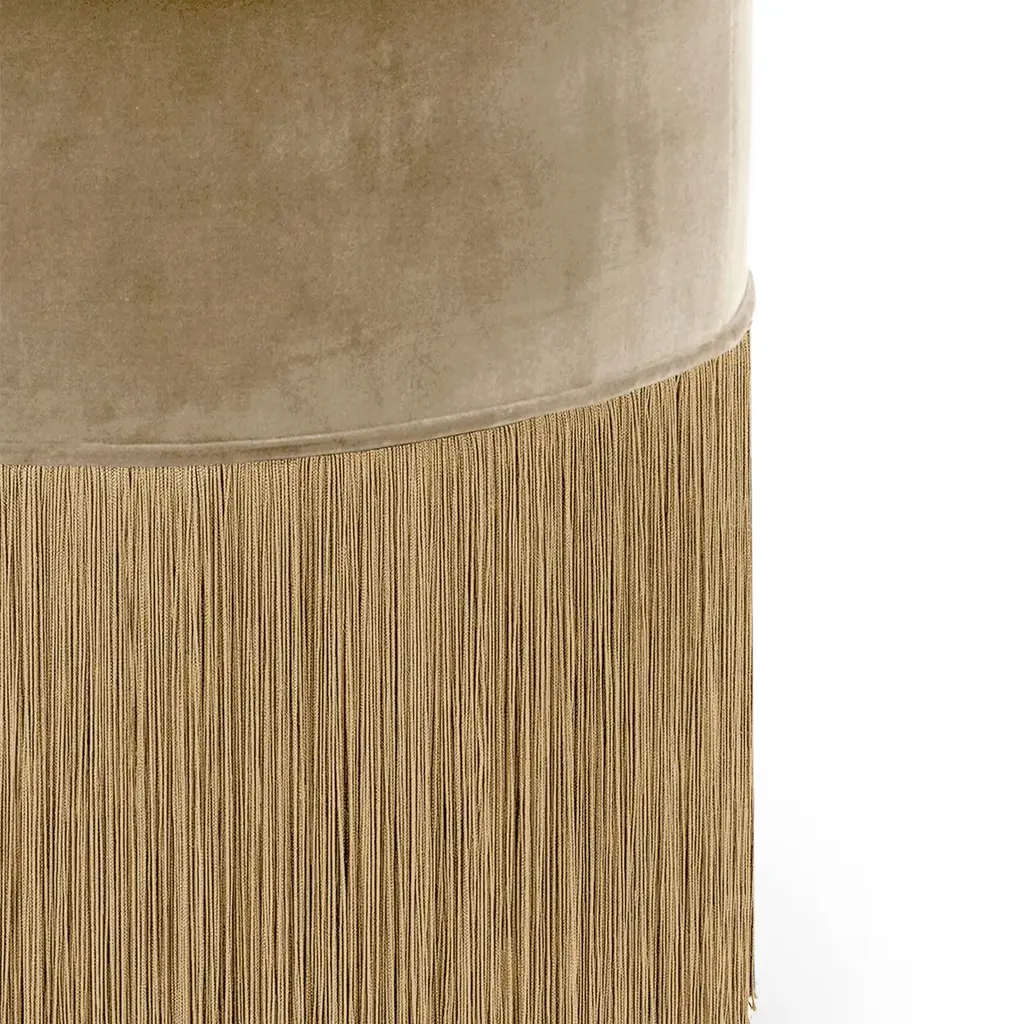 The Plain Beige Velvet Pouf is a sophisticated addition to any living space. With a diameter of 50 cm (19.7 inches) and a height of 46 cm (18.1 inches), this pouf offers a generous and comfortable seating option, combining both style and functionality. Upholstered in luxurious beige velvet, it features elegant tone-on-tone fringes that enhance its refined, timeless appeal. Its versatile design makes it perfect for a variety of settings—whether as a decorative accent, extra seating, or a stylish surface for trays and magazines. The Plain Beige Velvet Pouf seamlessly integrates into any interior decor, elevating the aesthetic of living rooms, bedrooms, or dressing areas with its understated charm and practicality. Each bespoke piece is stamped on the bottom of the pouf’s lining and personally signed, numbered, and dated by designer.