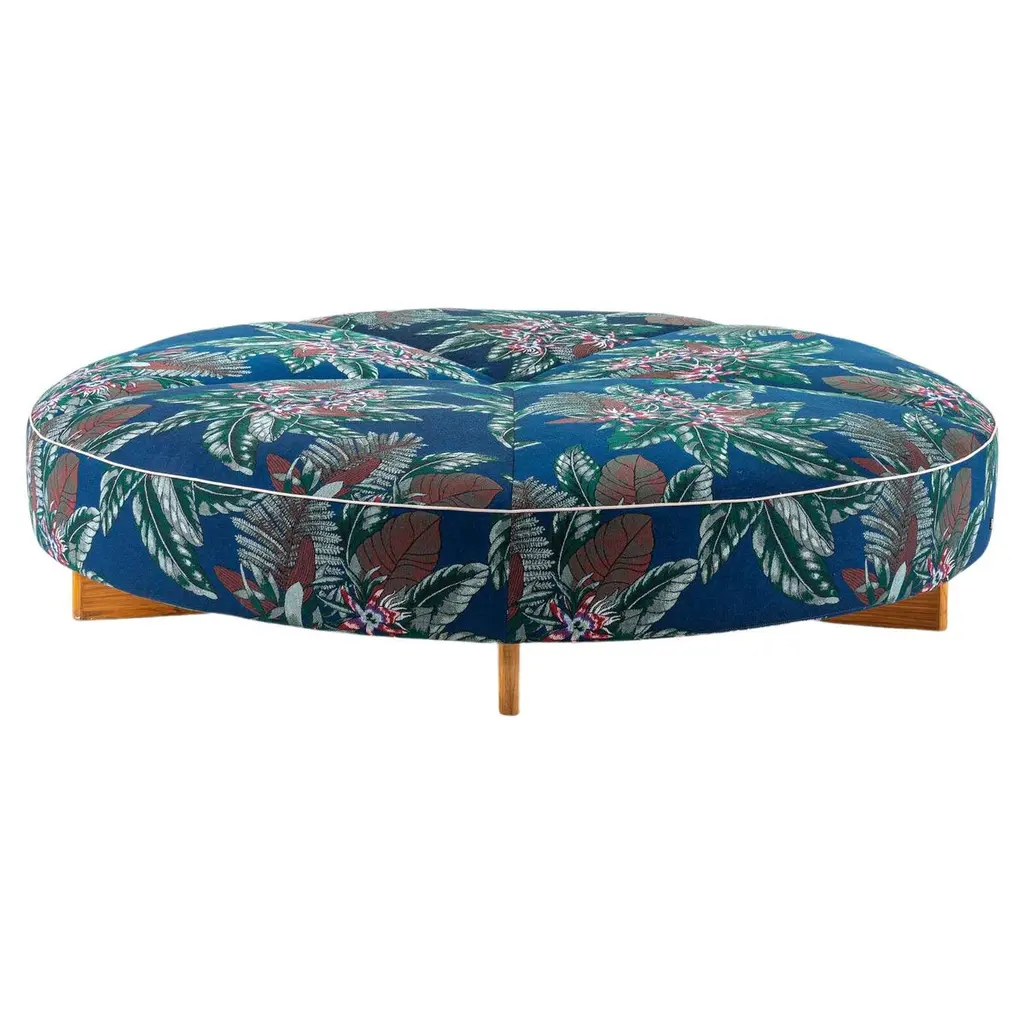The Plastics Outdoor Liberty Pouf from Kartell brings fashionable comfort to outdoor living spaces. Piero Lissoni's design features expanded polyurethane with softer density for enhanced comfort, wrapped in specially crafted Liberty outdoor fabrics. These weather-resistant textiles combine durability with the distinctive patterns Liberty is known for. This pouf works beautifully on patios, poolside areas, or covered porches, providing flexible seating or a footrest. Its compact form makes it easy to move around outdoor spaces as entertaining needs change.