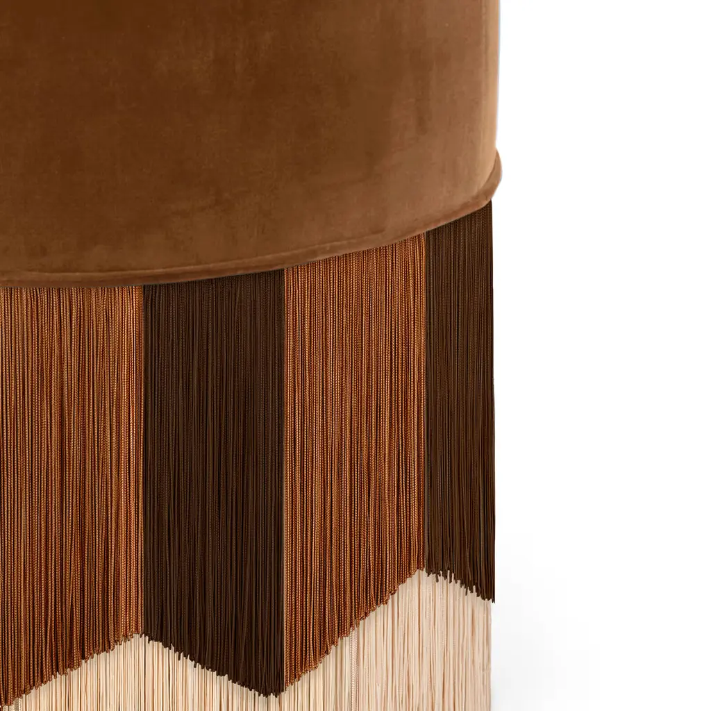 The Plissé Pouf, upholstered in rich cognac velvet, is a sophisticated addition to any living space. With a diameter of 50 cm, this pouf serves as both a functional piece for extra seating and a stylish decorative accent. The unique Plissé pattern, with its overlapping fringe motif, creates a captivating pleated effect, infusing the room with dynamic texture and movement. The warm cognac color adds a touch of luxury and elegance, effortlessly complementing a range of interior styles. Perfect for adding both comfort and visual interest to modern or traditional spaces. Each bespoke piece is stamped on the bottom of the pouf’s lining and personally signed, numbered, and dated by designer.