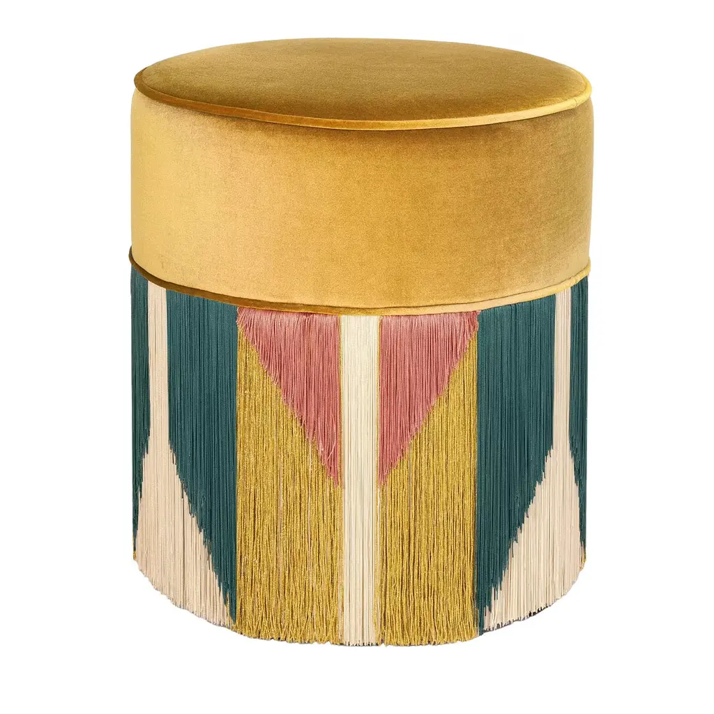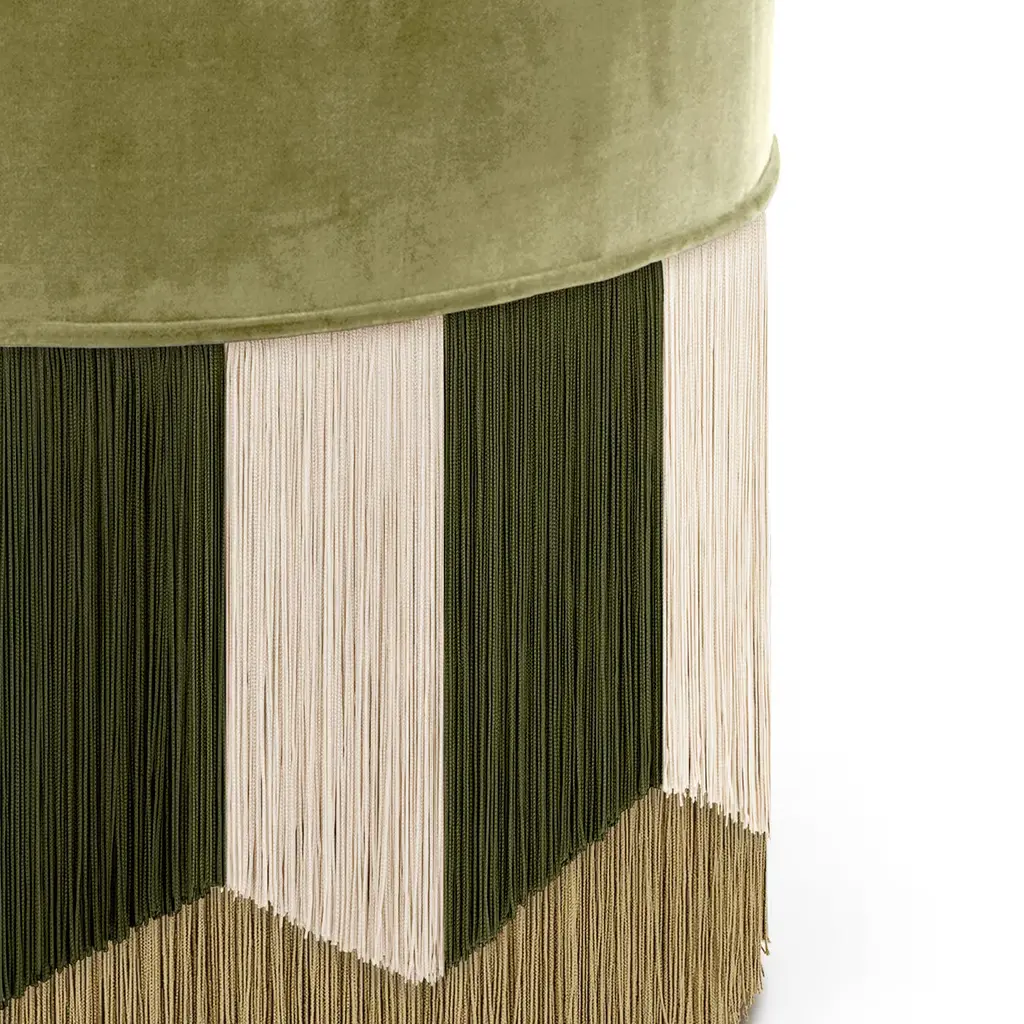 The Plissé Pouf, crafted in luxurious green moss velvet, is a striking addition to any living space. With a diameter of 50 cm, this pouf is a versatile piece that can be used for extra seating or as a chic decorative accent. The distinctive Plissé pattern, featuring an overlapping fringe motif, creates a beautiful pleated effect that adds texture and movement to the room. Its rich green moss hue evokes a sense of tranquility and natural elegance, making it the perfect complement to modern and eclectic interiors. Ideal for creating a cozy, inviting atmosphere. Each bespoke piece is stamped on the bottom of the pouf’s lining and personally signed, numbered, and dated by designer.