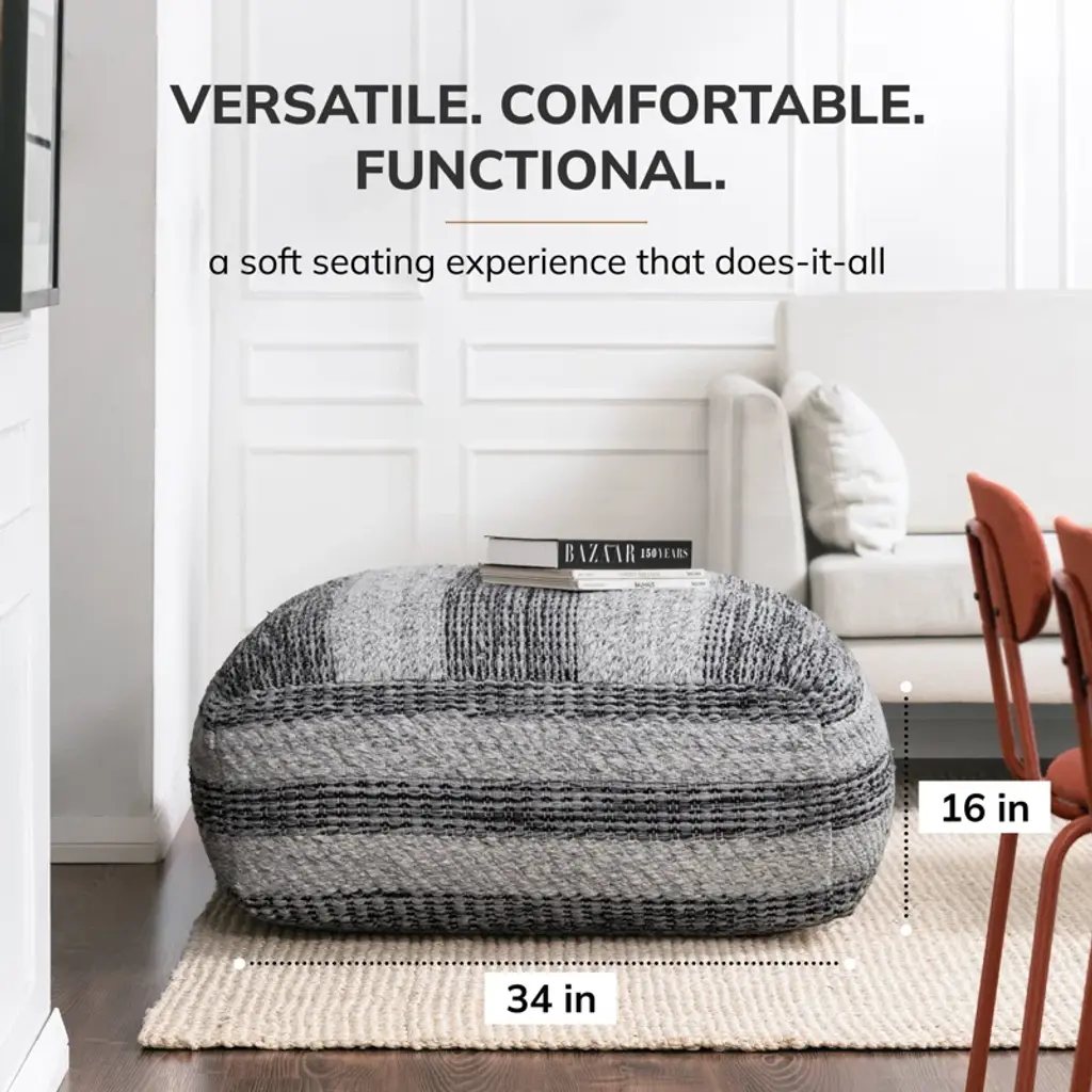 Add a pop of personality to your space with this round ottoman. It's made from braided jute, and it boasts a neutral two-toned design that evokes boho vibes. We love how this pouf offers the perfect mix of flexibility and support. Style this versatile piece in your entryway for a place to sit while you slip on your shoes, or slide it up to your living room sofa to prop your feet up after a long day.