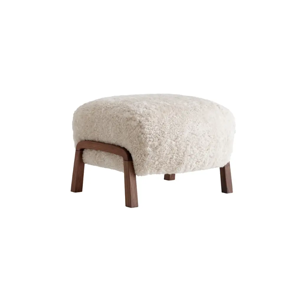 Based on the signature aesthetics of the sculptural Wulff lounge chair, the Wulff pouf is handcrafted with solid oak legs. Whether you use it as a footrest for the Wulff chair or as a quaint lounge stool on its own – the ultimate goal is relaxation.Material: Sheepskin 17mm, moonlight & oiled oak.Pouf Dimensions:H: 39cm/ 15.3in, W: 58cm/ 22.8in, D: 53cm/ 20.8inSeat Height: 39cm/ 15.3inWeight: 6.7kgProduction Process:The frame is made from solid beech and plywood and subsequently covered in HR foam and polyester wadding. The solid wood legs are turned and CNC milled.Based on the signature aesthetics of the sculptural Wulff lounge chair, the Wulff pouf is handcrafted with solid oak or walnut legs and is available in the same stylish upholstery as its namesake. Whether you use it as a footrest for the Wulff chair or as a quaint lounge stool on its own – the ultimate goal is relaxation.