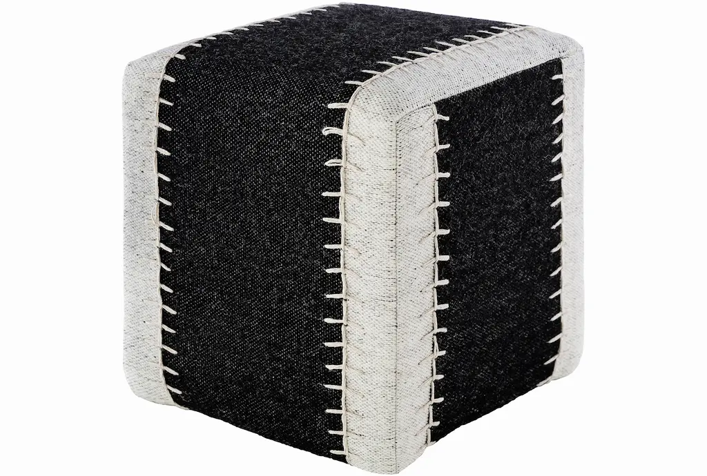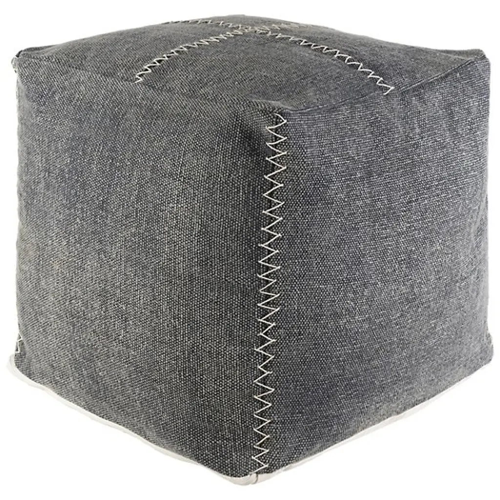 Pouf-Blanket Stitch Navy Black And White Natural Fiber Cotton | Square By Surya