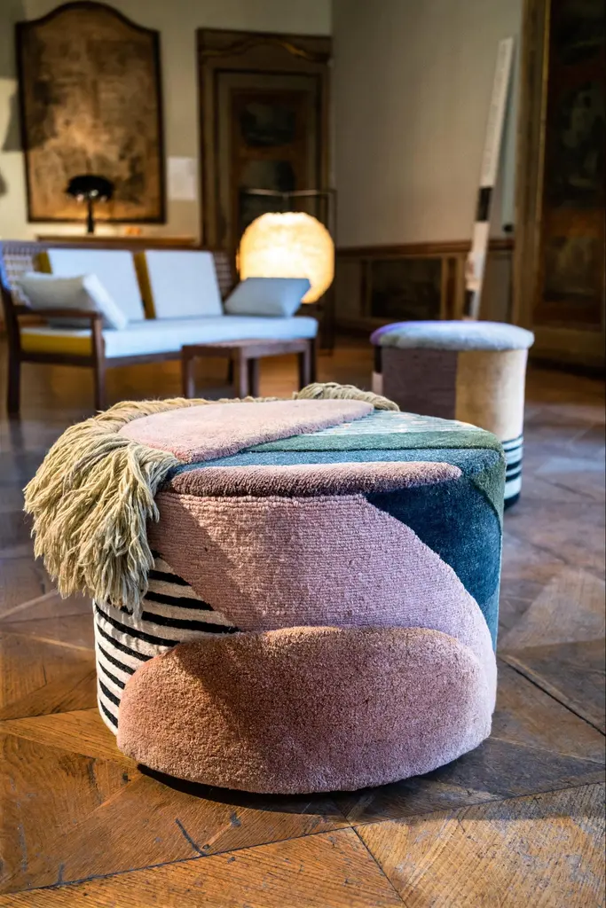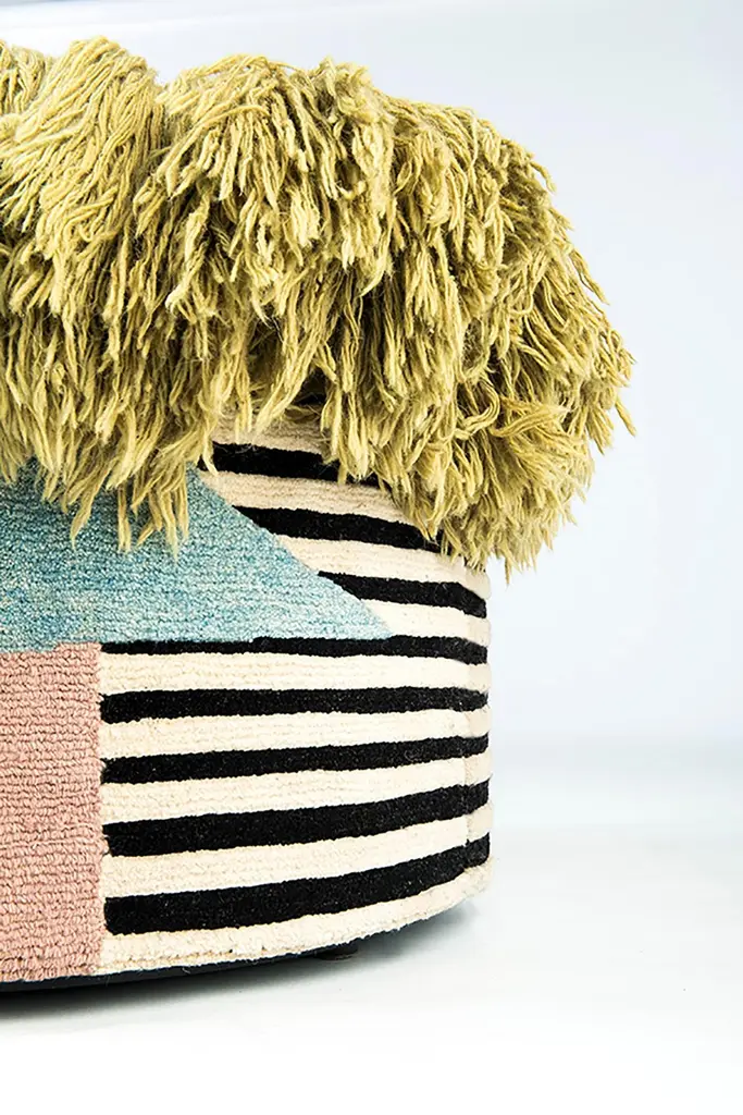 Pouf Charaktere colette by Lyk CarpetDimensions: Ø 62 x H 47 cm.Materials: 100% tibetan highland-wool,new pure hand-combed and hand-spun wool, natural vegetable-dyed wool, 100 knots per square inch.Hand-knotted, each object is upholstered to the highest standard of workmanship by Unique Factory, wood interior construction. Manual techniques and pot-dying makes every Lyk Carpet unique, slight variations in size & tone is possible. Please contact us.Mareike Lienau designs carpet objects and unique carpets for her label Lyk Carpet, which are hand knotted in Nepal. Her mission is to reinterpret craft and to bring it closer to young people. The superficial functionality of the She tries to radically question the superficial functionality of the carpet. Away from the rectangle Mareike wants to positive, lustful and imaginative the form & the craft, the material new, unseen and exaggerated show.Her approach asks: ‘What is contemporary about craft?‘ ,“Many people don’t really relate to products anymore. Mass production has led to today’s throwaway society. I want to contribute to raising people’s awareness, prompting them to think about products: how they are made and the resources involved; to generate values. I decided to do this through supporting the preservation of a cultural heritage, and by designing authentic objects. Contemplating and experiencing this artistic craft leads to new insights and points of view and enriches communication.With my textile posters and Pouf_Characters for example I am inviting people to ac- quaint themselves with a value creation chain, and to think about global responsibility.“