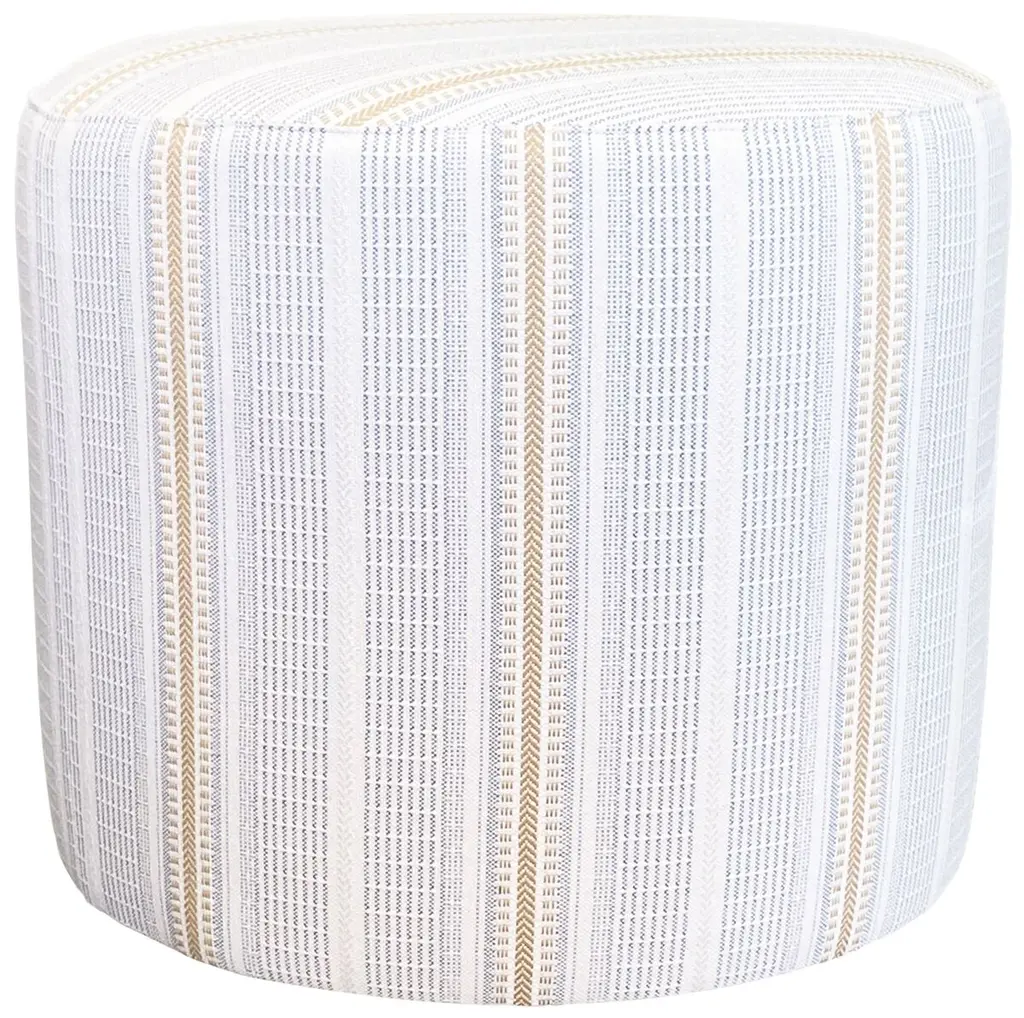 Pouf-Denim Blue Beige Braided Jute Fiber Cotton Blend | Round By Surya