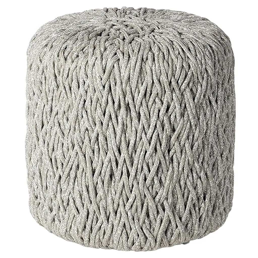 Pouf-Natural Grey Fabric Hand Crafted | Crochet | Round By Surya
