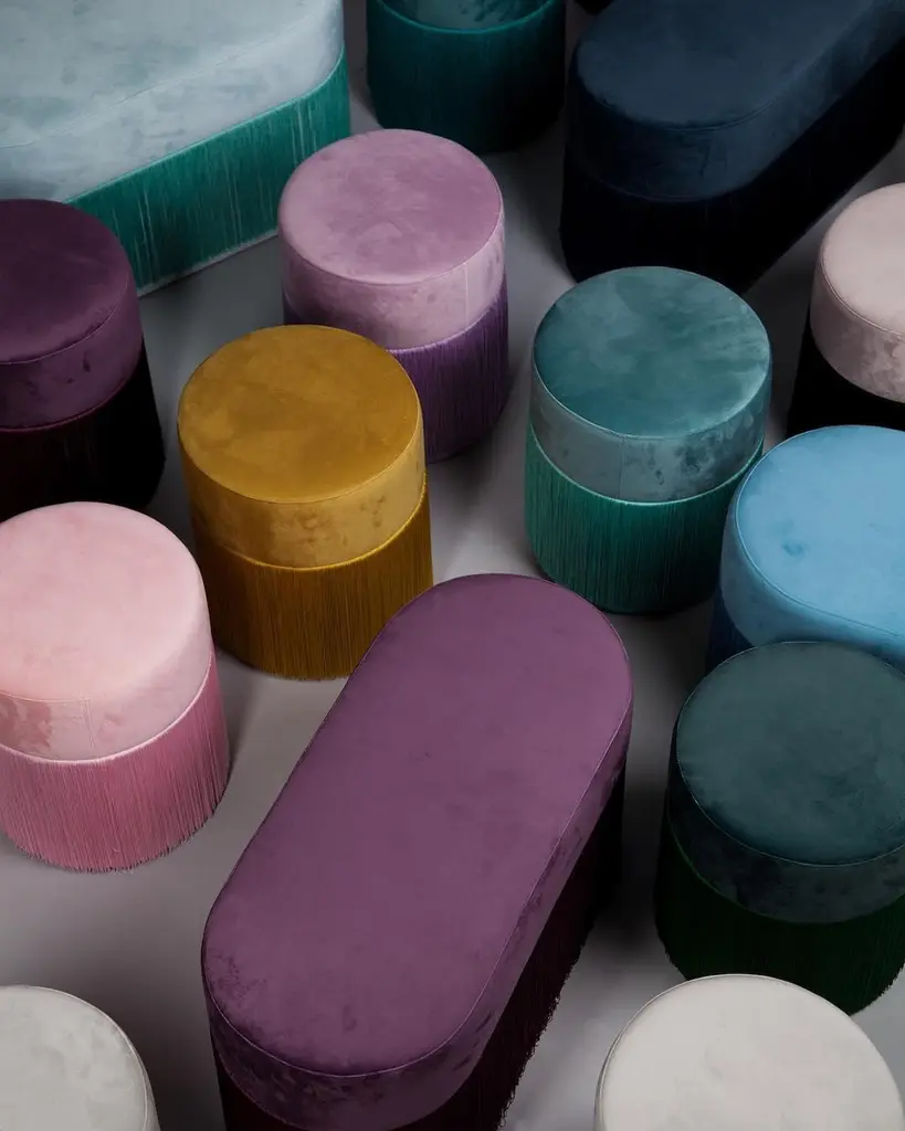 Pouf Pill S Contemporary Sculptural Pouf With Velvet And Fringes By Houtique