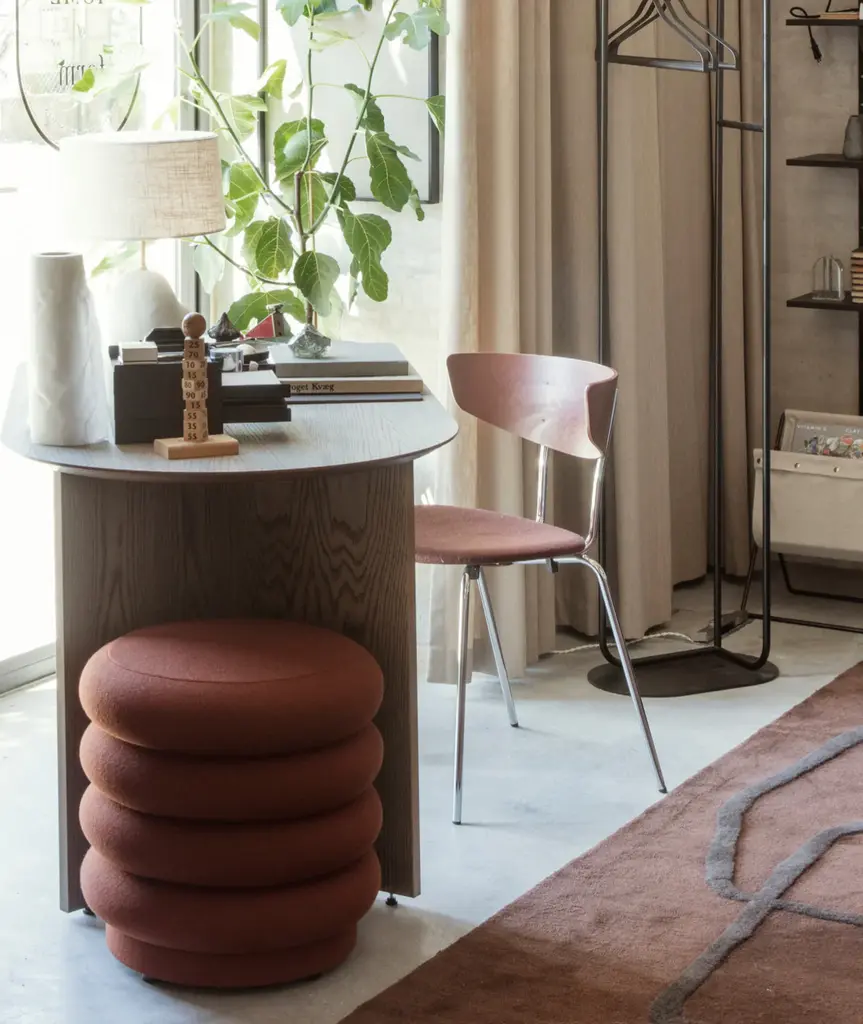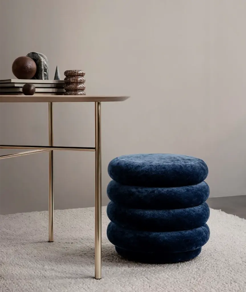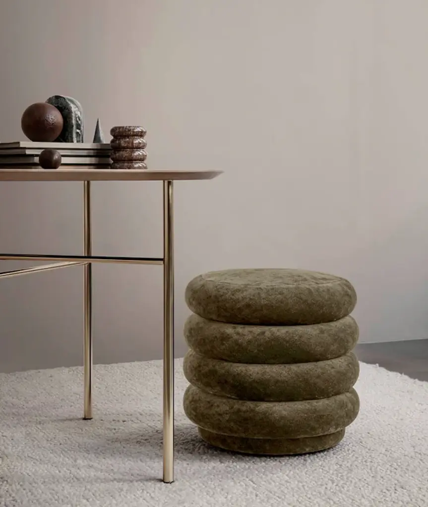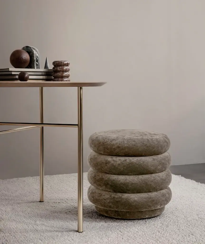 Contrasts are not only captivating to the eye but will also bring engaging dimensions to a room. The poufs with two levels form a graphic element, which combines softness with a modern interior. The rounded lines shape the distinct design in line with an emphasis on geometry and its simple and natural form, producing a more organic expression in your home.