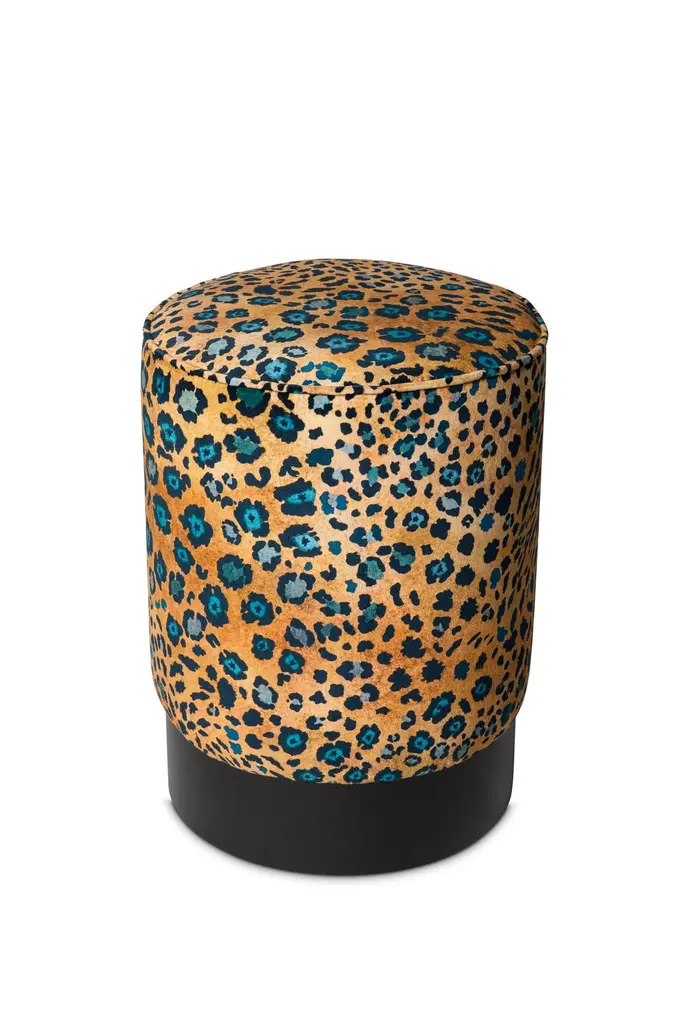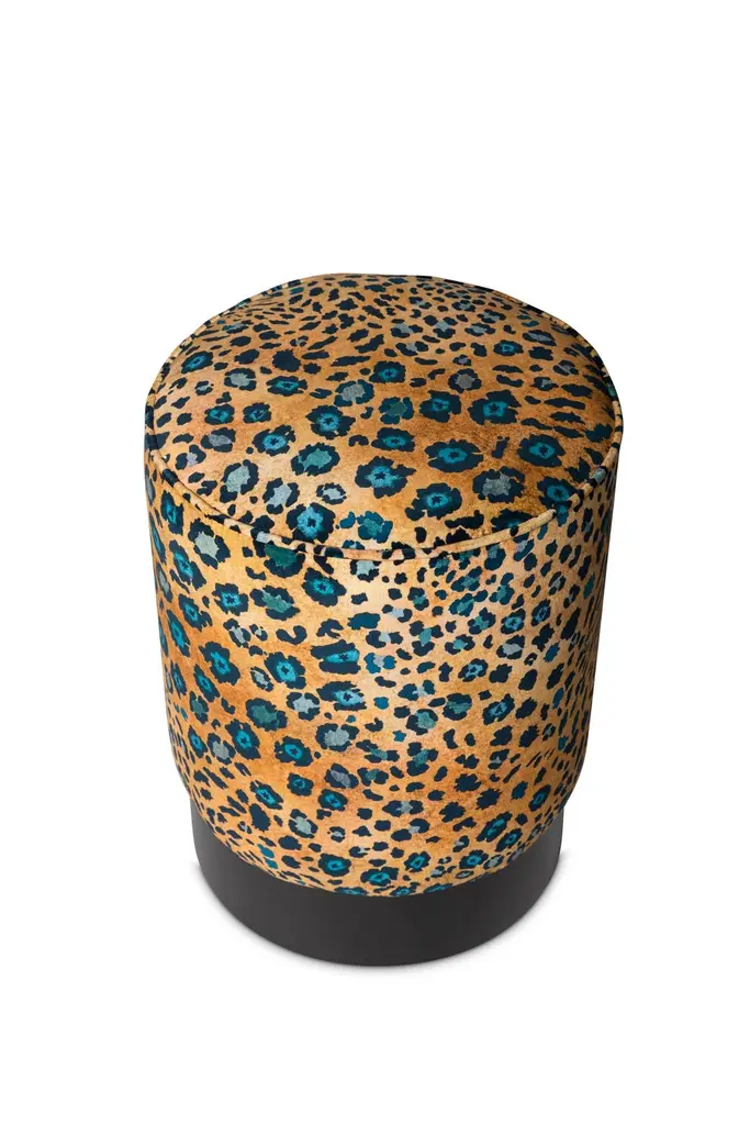 Available in two unique colors, the Safari Spot Velvet Pouf showcases the beautiful natural pattern of a leopard.Self-piped velvet fabric sits atop a powder-coated black base. Perfect to use as a stool, additional seating, or decorative accent. Dimensions: 15" Dia. x 19.5" HColor: Safari Spot GoldMade Of: Self Piped Velvet (49% Viscose / 42% Cotton / 9% Polyester) / Black Powder Coated Banded BaseManufacturer: ArdmoreMade In: Johannesburg, South Africa