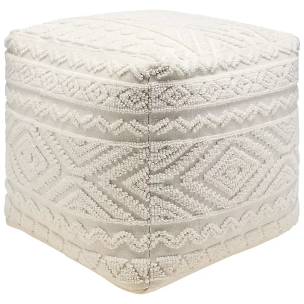The Pouf-Textured Natural Fiber Cotton with Diamond Pattern in multicolor charcoal and white offers a modern touch to any living room or bedroom. The square design complements various decor styles, providing both comfort and visual appeal. This versatile pouf is made with wool, viscose, polybeads, and cotton, ensuring durability and softness.