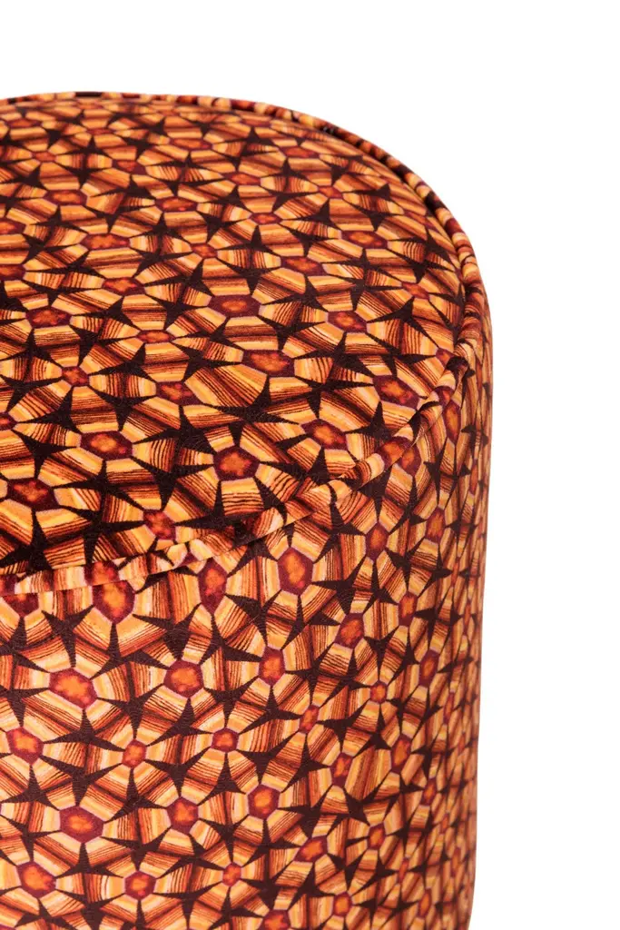 Available in two unique colors, the Thanda Tortoise Velvet Pouf showcases an interpretation of Leopard Tortoise's shell and their instinct to retract into their safe home, shielded from outside harm. Self-piped velvet fabric sits atop a powder-coated black base. Perfect to use as a foot stool, additional seating, or decorative accent.Dimensions: 15" Dia. x 19.5" HColor: Thanda Tortoise PlumMade Of: Self Piped Velvet (49% Viscose / 42% Cotton / 9% Polyester) / Black Powder Coated Banded BaseManufacturer: ArdmoreMade In: Johannesburg, South Africa