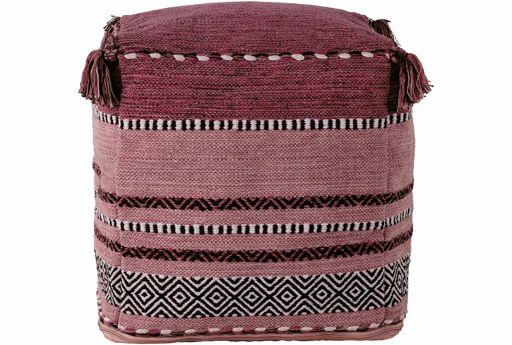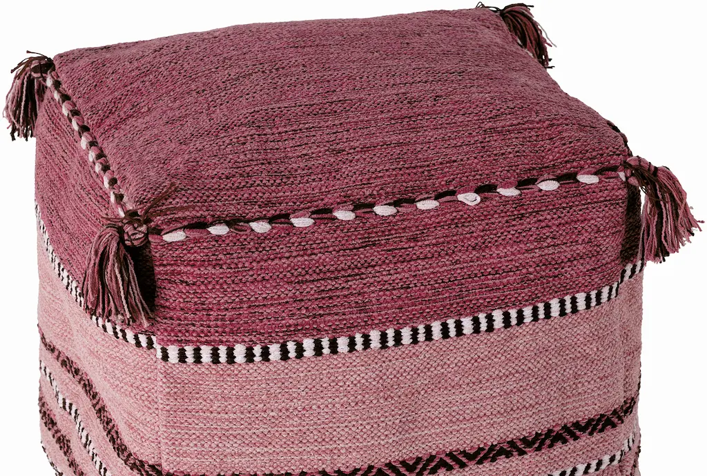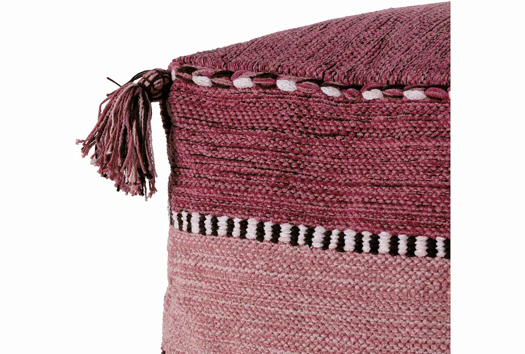 Pouf-Youth Pink And Blush Multicolor Cotton Fiber Tassled | Fringe | Square By Surya | Tassels