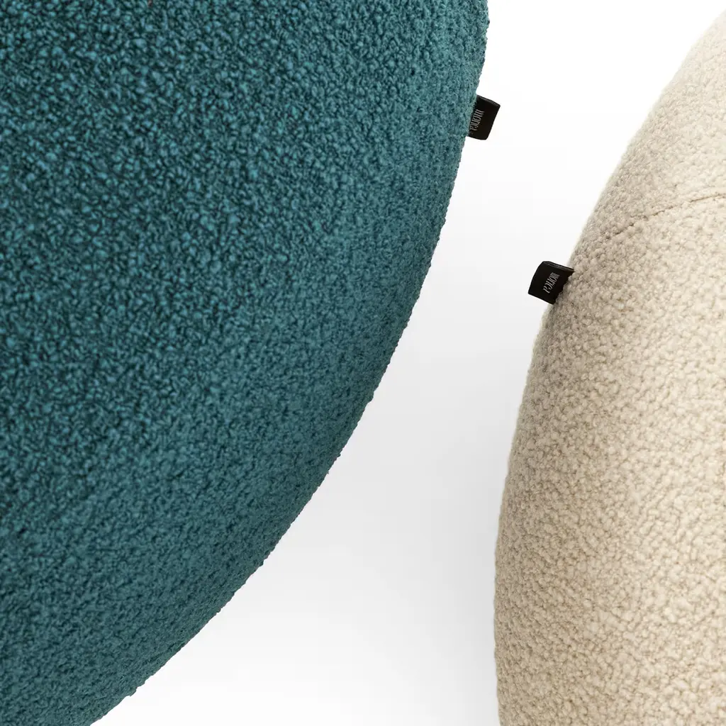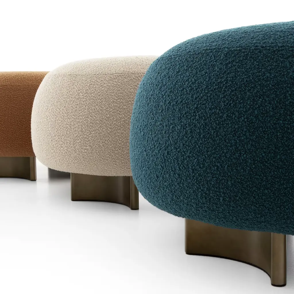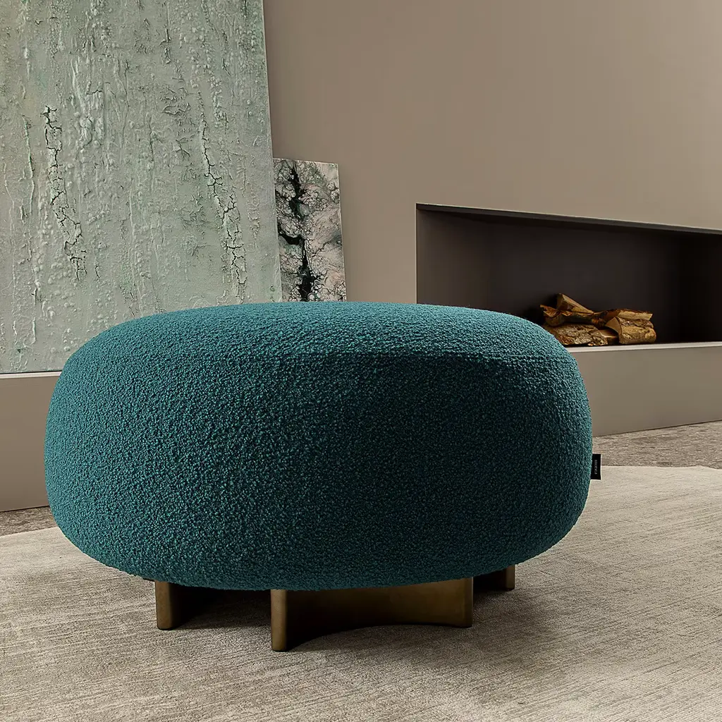 Distinguished by its striking Peacock Blue hue, this exquisite pouf features a high-density foam seat, upholstered in plush bouclé fabric that is both soft to the touch and entirely removable for easy care. The elegant base is crafted from curved MDF and finished in a sophisticated Oxidized Bronze lacquer, adding a touch of modern refinement. This pouf not only offers exceptional comfort but also serves as a bold accent piece, effortlessly elevating the style of any contemporary living space.