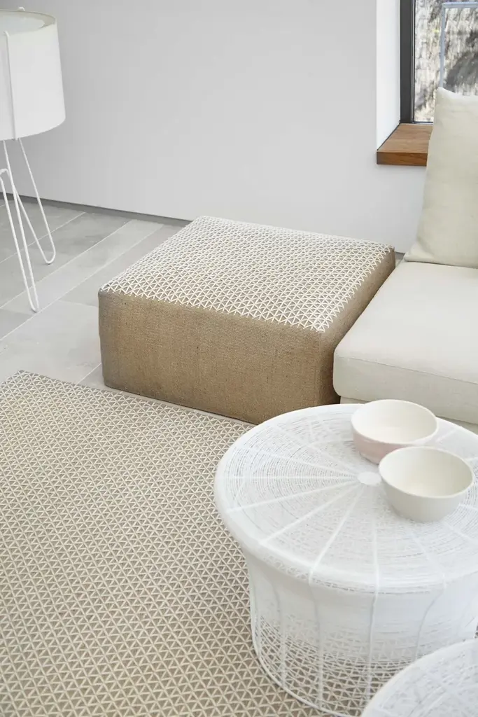 The RAW collection designed by Borja García is a declaration of honesty and authenticity in design, even its name is synonymous with purity and strength. “Natural materials have always interested me, their pure state, almost untouched,” outlines the designer.Natural materials constitute a blank canvas on which different designs are traced, framing each element of the collection that includes carpets, poufs and cushions, within a playful context that simultaneously expresses two ideas. The designer takes inspiration from the traditional architecture of the Mediterranean. “The houses designed by Coderch, Bonet and Spain of the 1960s have left us with a palette of raw materials and elemental solutions that are highly seductive. This cocktail is presented through RAW, either directly or indirectly through its materiality and geometry,” explains Borja García.A design that recovers traditional techniques and brings them into a contemporary context.A smooth layer of wool is laid over the jute base, combining two seemingly discordant languages but which work here in harmony. The clean lines of the permeable geometry of this secondary overlay lend the classical material a contemporary and modern expression. With the GAN stamp of quality, the indoor brand belonging to GANDIABLASCO the RAW collection reinforces the link between product and the brands in-house design.
