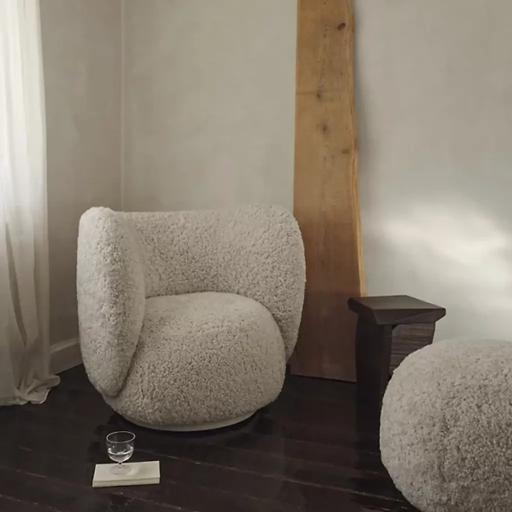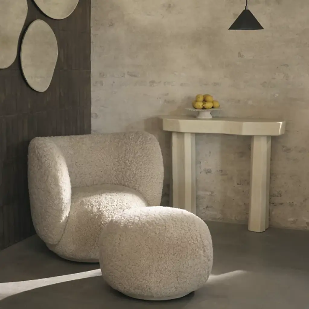 The Rico Pouf from Ferm Living brings soft curves and voluminous shapes to classic design, offering a warm and inviting aesthetic. This pouf, a perfect companion to the Rico Lounge Chair, serves as a versatile addition to any space, functioning as a footrest or an extra seat when needed. Its curvaceous design blends comfort with elegance, which adds a modern touch that effortlessly enhances the ambiance of any room.