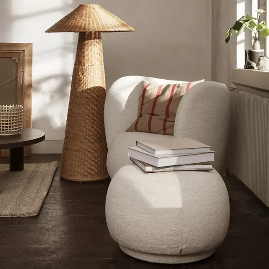The Rico Pouf from Ferm Living brings soft curves and voluminous shapes to classic design, offering a warm and inviting aesthetic. This pouf, a perfect companion to the Rico Lounge Chair, serves as a versatile addition to any space, functioning as a footrest or an extra seat when needed. Its curvaceous design blends comfort with elegance, which adds a modern touch that effortlessly enhances the ambiance of any room.