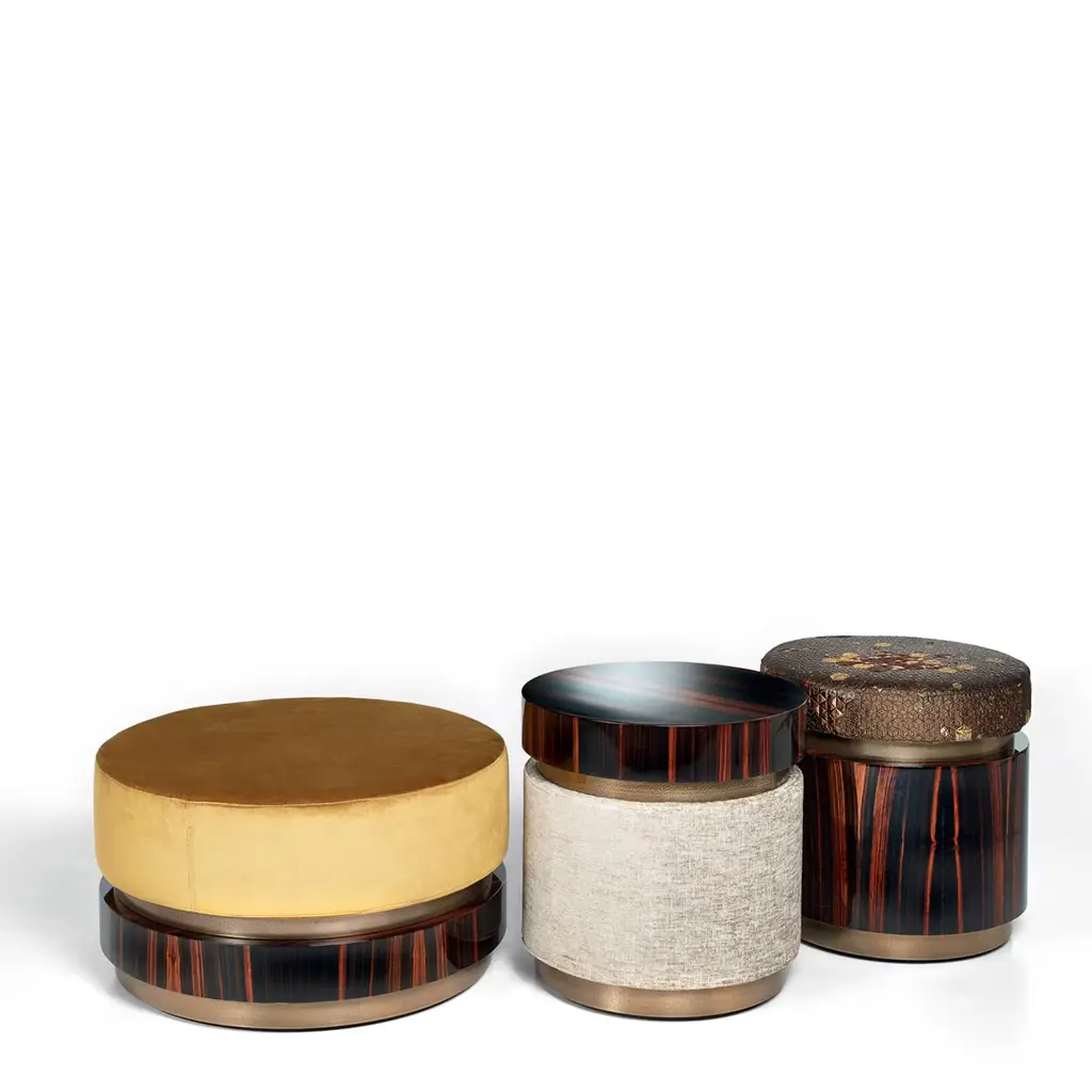 This trendy yet timeless pouf gives a subtle touch of color to the living room. It can be upholstered with different fabrics to suit any space. It can be used as a chair, footrest or side table.