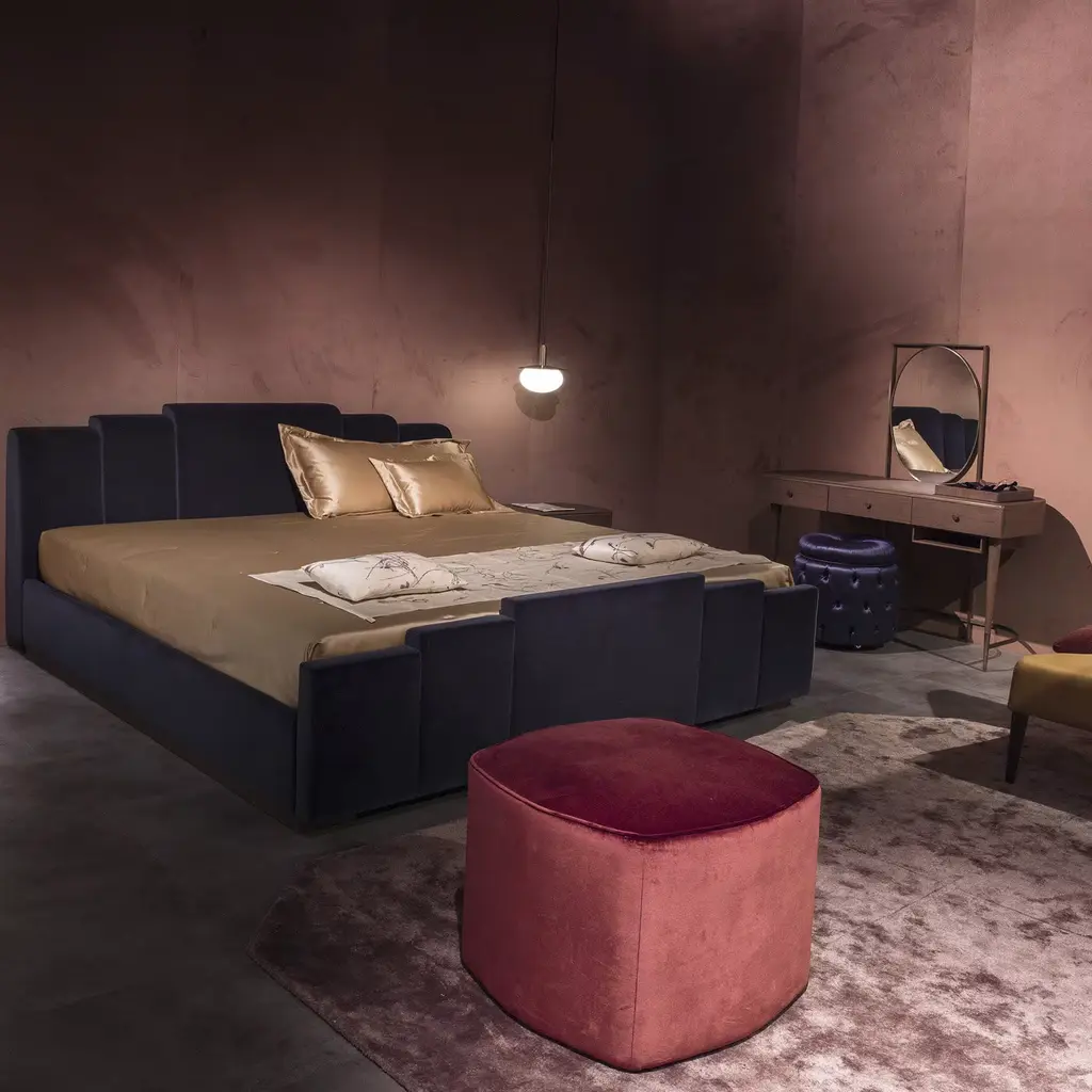 Part of a collection exuding passion and romantic allure, this superb pouf will be a perfect addition to a vanity in a bedroom. Impeccable comfort wrapped in stylish red fabric, this pouf can be used as extra seating or occasional table in a modern living room or office decor. Please inquire with the Concierge for accurate details on the materials.