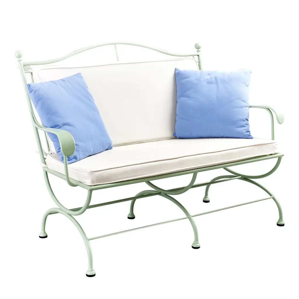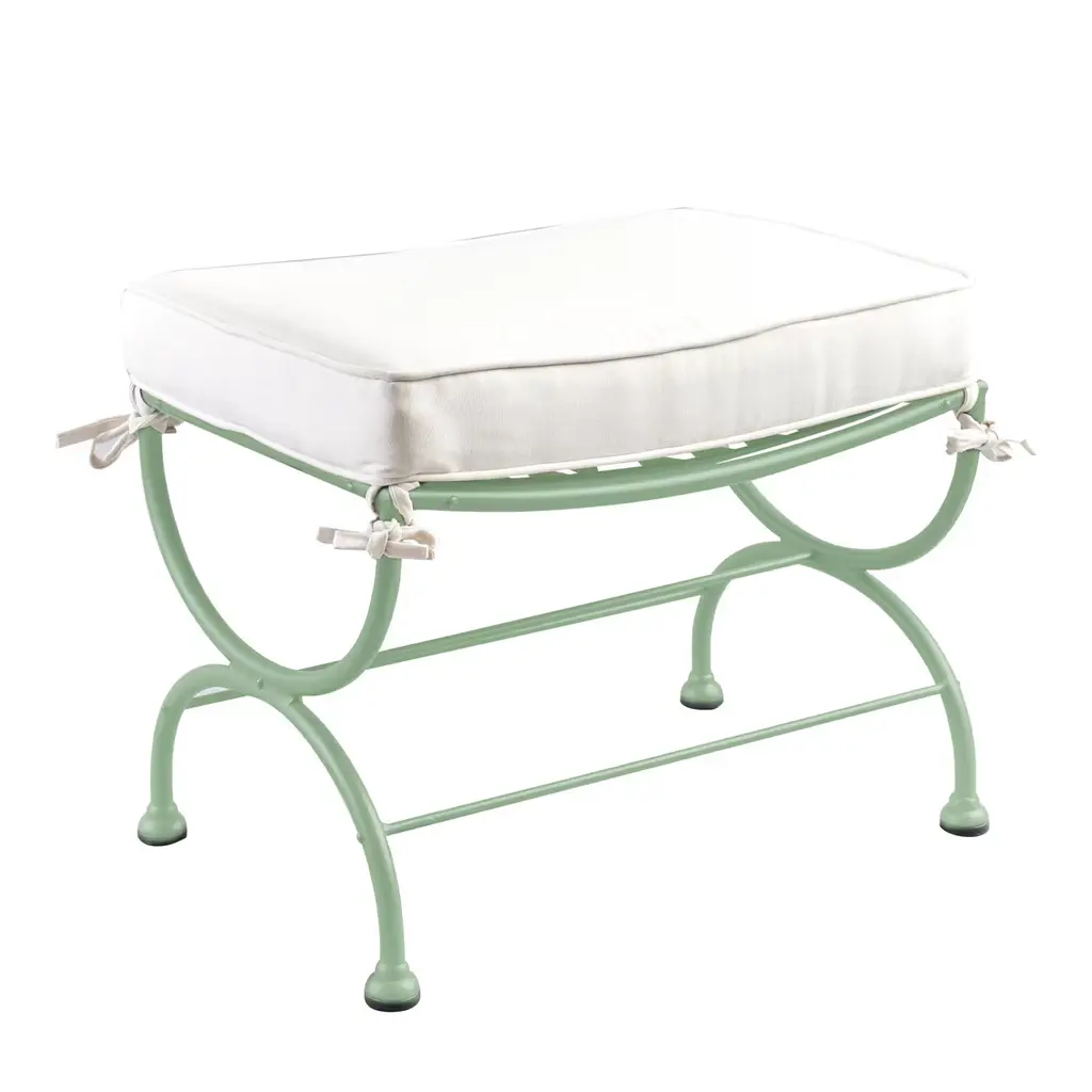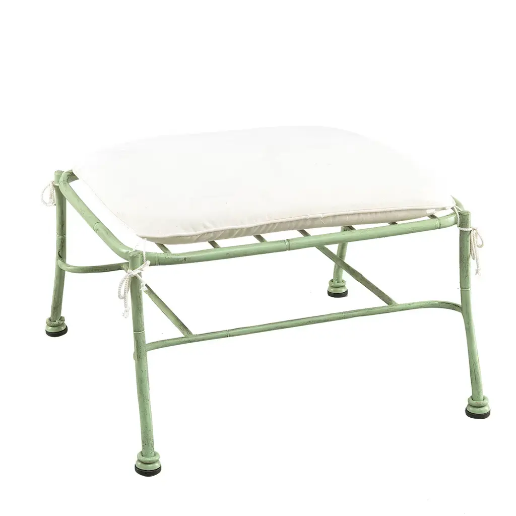 Rest your feet or sit in your patio on this charming little light green pouf with a stainless steel bench and an outdoor cushion included. The relaxing pastel color will soothe your eyes while the comfortable upholstered white cushion will make you feel as if you were sitting on a cloud.