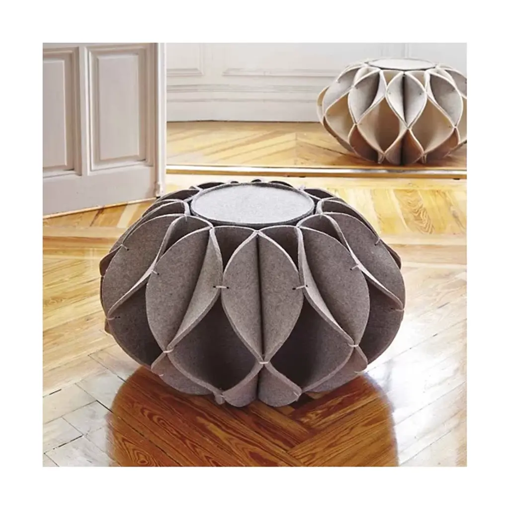 Unique with an elegant feel. Gan Rug’s Ruff Pouf took inspiration from the ornate collars from the Elizabeth times. Features an interesting folding technique that creates a pleated design all being made using 100% wool felted materials. A work of art in itself that offers a living space a comfortable place to sit in style.