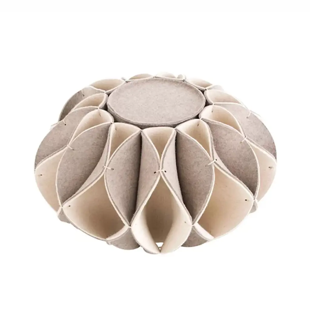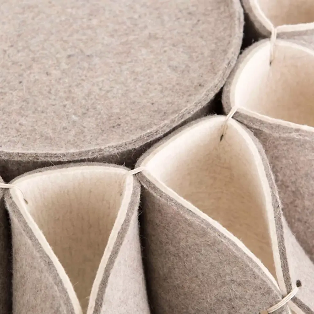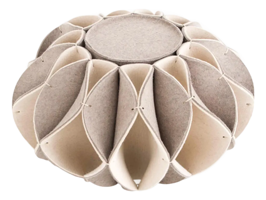 Unique with an elegant feel. Gan Rug’s Ruff Pouf took inspiration from the ornate collars from the Elizabeth times. Features an interesting folding technique that creates a pleated design all being made using 100% wool felted materials. A work of art in itself that offers a living space a comfortable place to sit in style.