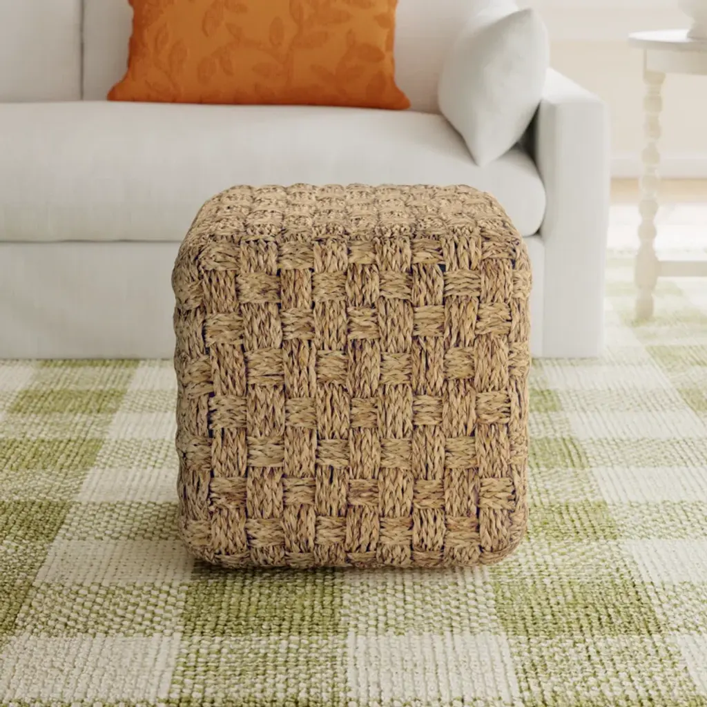 This pouf measures 17.7L x 17.7W x 17.7H. The Runa, shaped like a square, and skillfully crafted from seagrass with an intricate weave pattern, is a beautiful and unique addition to your space. The Runa is finished in a medium brown color, making it a stunning pouf that is sure to be the perfect accent in your space. Featuring a stunning design that flaunts clean lines and subtle curves, this pouf makes for a gorgeous addition to spaces based on the elegant or modern design style.
