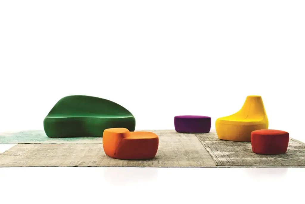 Saruyama Islands poufs are elements upholstery in injected flame-retardant polyurethane foam over internal steel frame and wooden base. Saruyama island collection covers are not removable.The Saruyama sofa, a revolutionary and unique project designed by Toshiyuki Kita in 1989 for Moroso that has become an icon of contemporary design, is now joined by Saruyama Islands. The first Saruyama, with its geomorphic shape, an extraordinarily lyrical object, is made up of three modules which, joined together, form a large circular island, different one from the other to suggest a free interpretation of seating. With Saruyama Islands Kita develops and expands the design, combining with the first an “archipelago” of independent islands made up of small seats, a chaise longue and small tables that can live together or independently of each other, at the same time maintaining unchanged the organic aesthetic features and function inherent in the initial design. While Saruyama is intended for large spaces, the islands meet more compact needs.