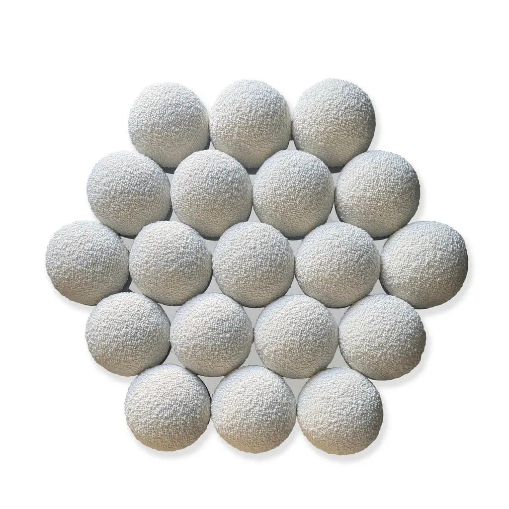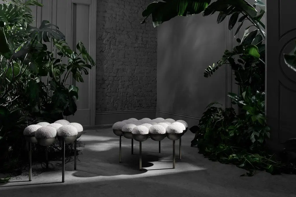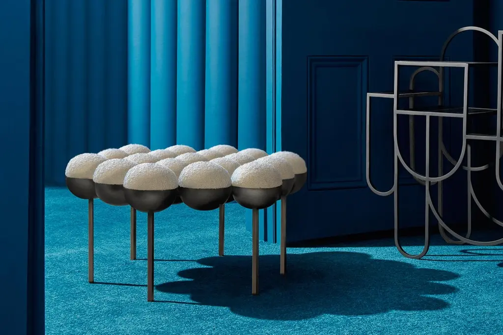 The equally singular Saturn pouffe utilises the same gathered bilboquet seat construction, to create a more simplified but still incredibly distinctive form. The sumptuously undulating seat instantly appeals with its invitingly upholstered comfort, while the graceful supporting metalwork establishes the sense of floating and airiness.With sustainability increasingly shaping the design world, at Bohinc Studio we rely on durable design solutions.‘In order to be environmentally friendly, pieces have to be either durable or made from materials that can be fully recycled and transformed completely into new products’, says Lara Bohinc, whose furniture for Bohinc Studio is predominantly made of metal. ‘Metal is not only long-lasting, it can also be reused infinitely. With its inherent longevity and durability, metal is viable from both economic and environmental point of view, making it one of the only truly eco-friendly materials to make furniture with. No other material can be used over and over again to produce such long lasting usage.’ The Saturn Pouffe is available in sizes small (dia 445 x h 400mm) and Large (dia 740 x h 400 mm) Please note that metal’s bronze colour is achieved with a natural oxide and not with galvanic process, which means that the final results may vary from lighter to darker bronze colour.The chair is made by hand in Portugal.Material: Bronze oxidised steel frame and ivory boucle dedar woolDimensions: 740 x 740 x H 400mm.