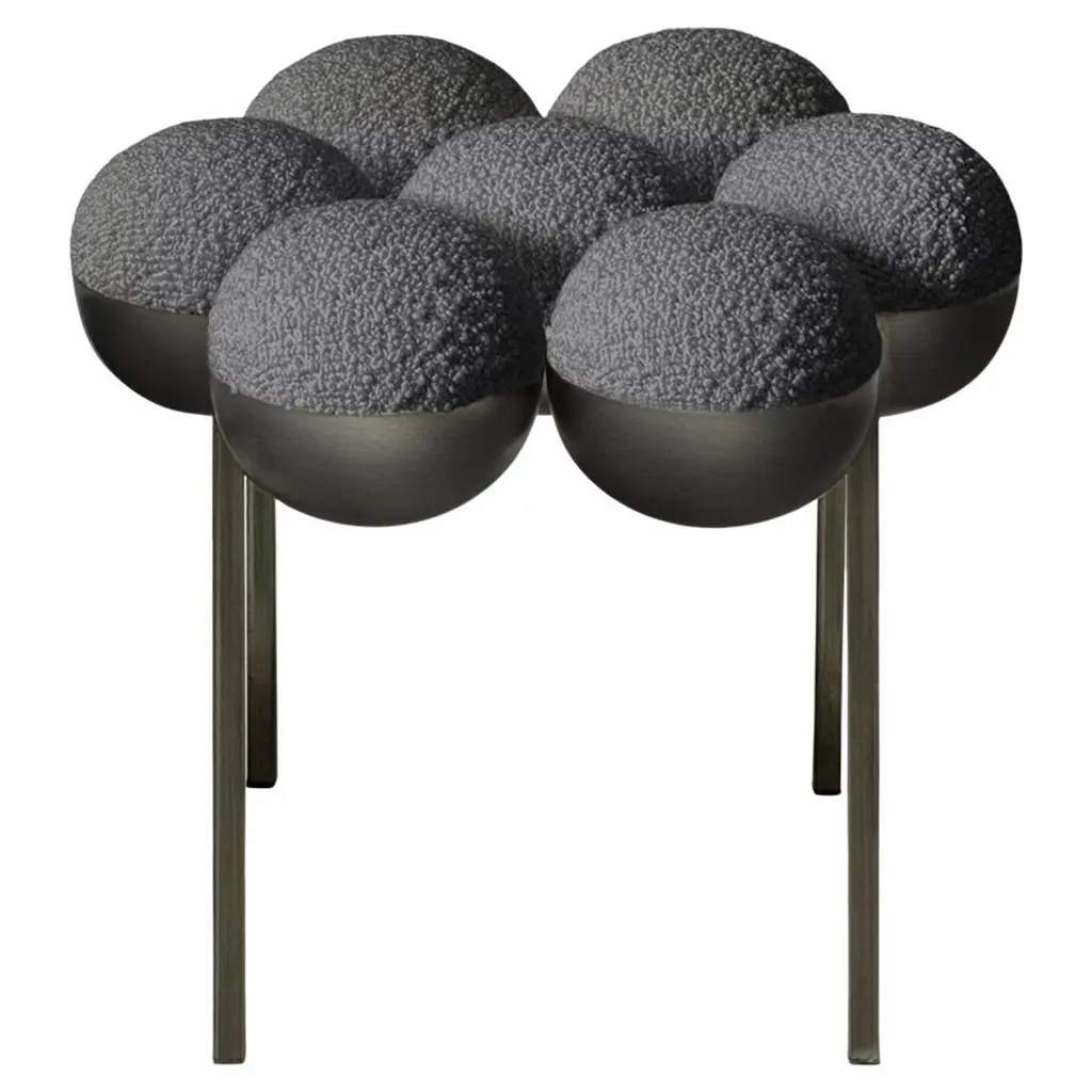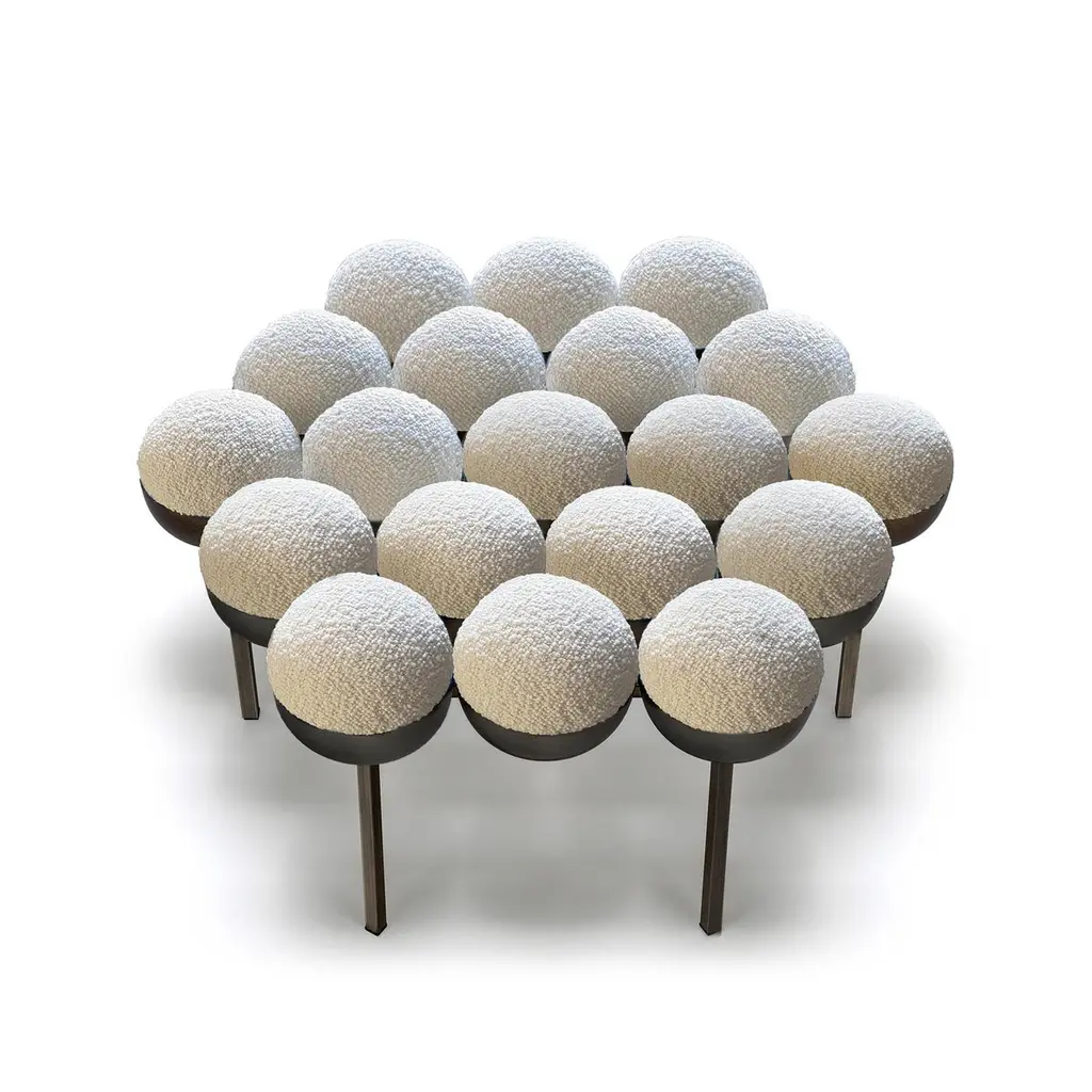 Saturn Pouffe Large Ottoman, Bronze, Cream Boucle, Modern, Sculptural