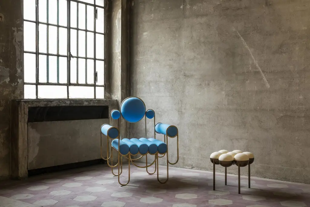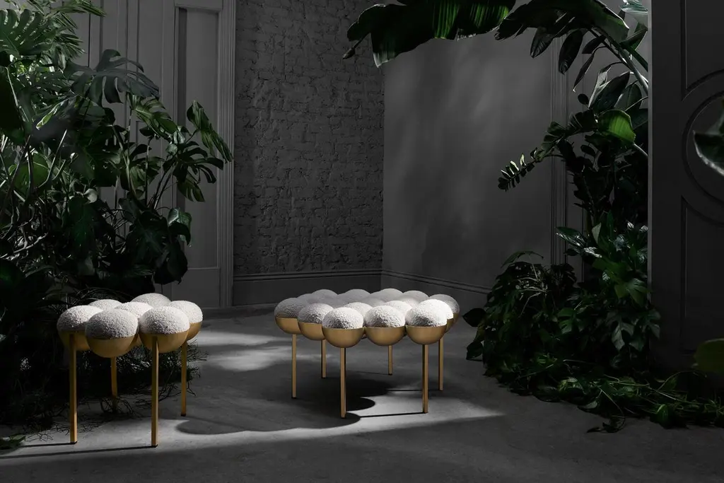 The equally singular Saturn pouffe utilises the same gathered bilboquet seat construction, to create a more simplified but still incredibly distinctive form. The sumptuously undulating seat instantly appeals with its invitingly upholstered comfort, while the graceful supporting metalwork establishes the sense of floating and airiness.With sustainability increasingly shaping the design world, at Bohinc Studio we rely on durable design solutions.‘In order to be environmentally friendly, pieces have to be either durable or made from materials that can be fully recycled and transformed completely into new products’, says Lara Bohinc, whose furniture for Bohinc Studio is predominantly made of metal. ‘Metal is not only long-lasting, it can also be reused infinitely. With its inherent longevity and durability, metal is viable from both economic and environmental point of view, making it one of the only truly eco-friendly materials to make furniture with. No other material can be used over and over again to produce such long lasting usage.’ Please note that metal’s bronze colour is achieved with a natural oxide and not with galvanic process, which means that the final results may vary from lighter to darker bronze colour.The chair is made by hand in Portugal.The Saturn Pouffe is available in sizes small (dia 445 x h 400mm) and Large (dia 740 x h 400 mm) Each piece of furniture is individually numbered and comes with a signed Certificate of authenticity to prove that it is Bohinc Studio original.Material: Bronze Oxidised Steel Frame and Cream WoolDimensions: 740 x 740 x H 400mm.