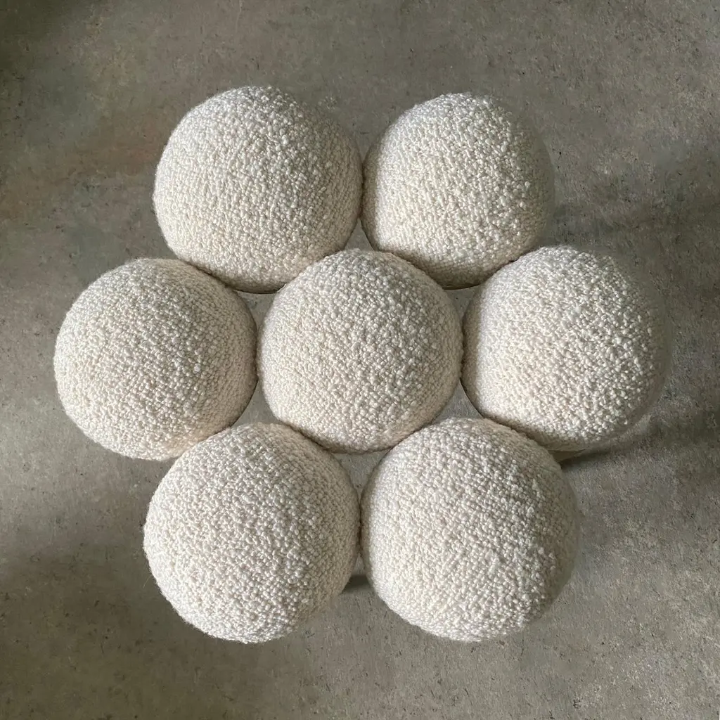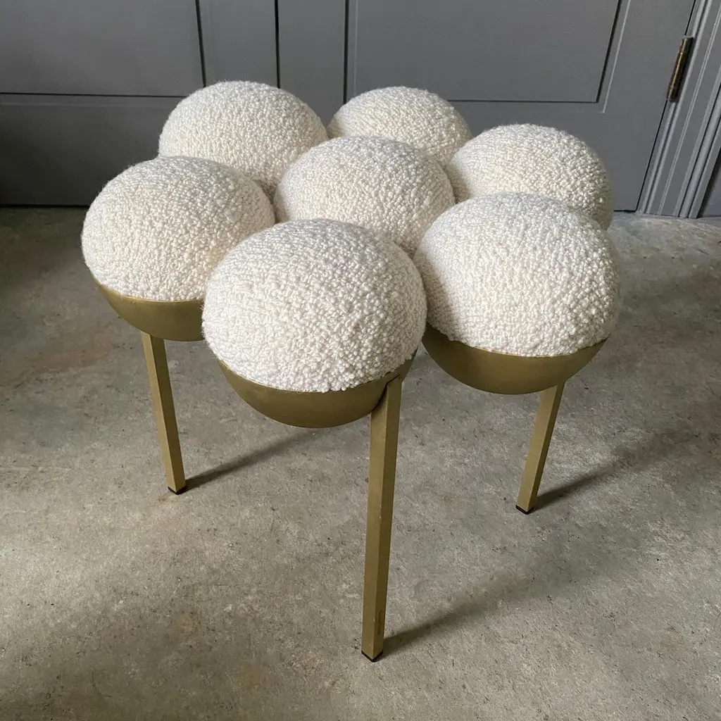 Saturn Pouffe, Ottoman, Brass Frame, Cream Boucle, Modern, Sculptural