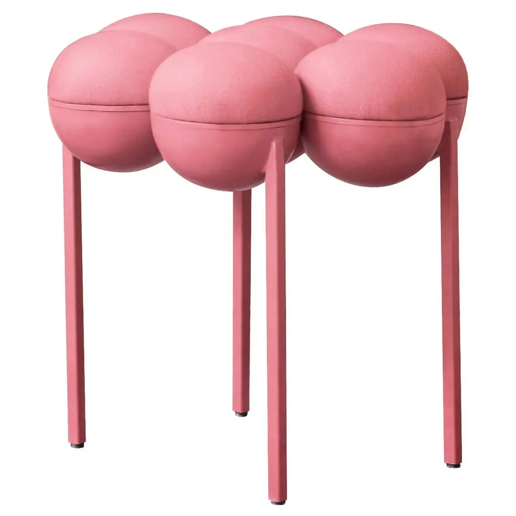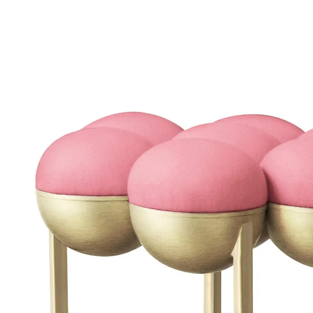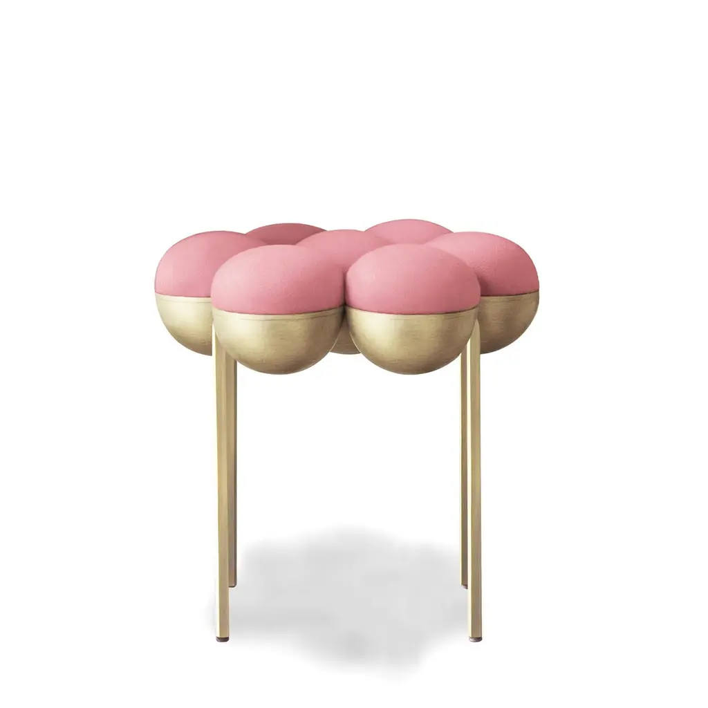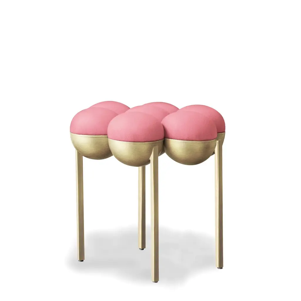Saturn Pouffe Small, Brushed Brass Frame And Pink Wool By Lara Bohinc