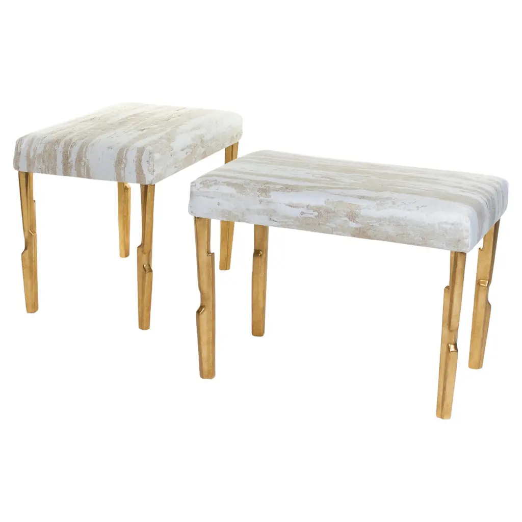The equally singular Saturn pouffe utilizes the same gathered bilboquet seat construction, to create a more simplified but still incredibly distinctive form. The sumptuously undulating seat instantly appeals with its invitingly upholstered comfort, while the graceful supporting metalwork establishes the sense of floating and airiness.The chair is made in brushed brass and wool fabric. Please note that even though brass is protected by clear varnish, it may still oxidise over the years which is a natural ageing process. The chair is made by hand in Portugal. With sustainability increasingly shaping the design world, at Bohinc Studio we rely on durable design solutions.In order to be environmentally friendly, pieces have to be either durable or made from materials that can be fully recycled and transformed completely into new products’, says Lara Bohinc, whose furniture for Bohinc Studio is predominantly made of metal. ‘Metal is not only long-lasting, it can also be reused infinitely. With its inherent longevity and durability, metal is viable from both economic and environmental point of view, making it one of the only truly eco-friendly materials to make furniture with. No other material can be used over and over again to produce such long lasting usage.’The Saturn Pouffe is available in sizes small (Diameter 445 x height 400mm) and large (Diameter 740 x height 400 mm) Each piece of furniture is individually numbered and comes with a signed Certificate of authenticity to prove that it is Bohinc Studio original.Material: brushed brass and wool fabricDimensions: 820 x 580 x H 1000mm.