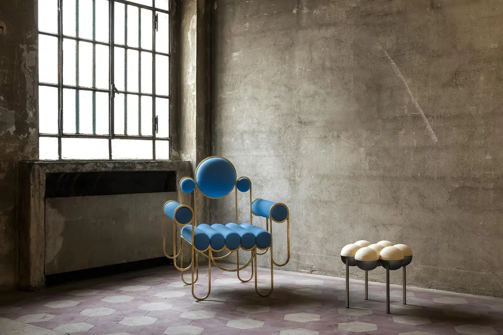 The small Saturn pouffe utilises the same gathered bilboquet seat construction as Saturn chair. The sumptuously undulating seat instantly appeals with its invitingly upholstered comfort, while the graceful supporting metalwork establishes the sense of floating and airiness.Please note that metal’s bronze color is achieved with a natural oxide and not with galvanic process, which means that the final results may vary from lighter to darker bronze color.The chair is made by hand in Portugal.The Saturn Pouffe is available in sizes small (diameter 445 x height 400mm) and large (diameter 740 x height 400 mm)Each piece of furniture is individually numbered and comes with a signed “Certificate of Authenticity” to prove that it is Bohinc Studio original.Material: Bronze oxidised steel, a bouclé wool and viscose Dedar fabricDimensions: 820 x 580 x H 1000mm.