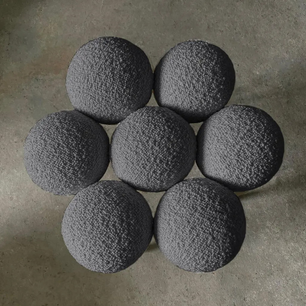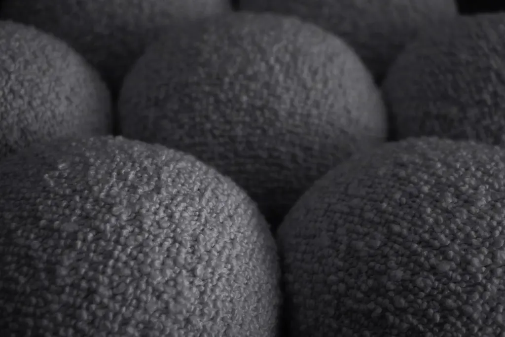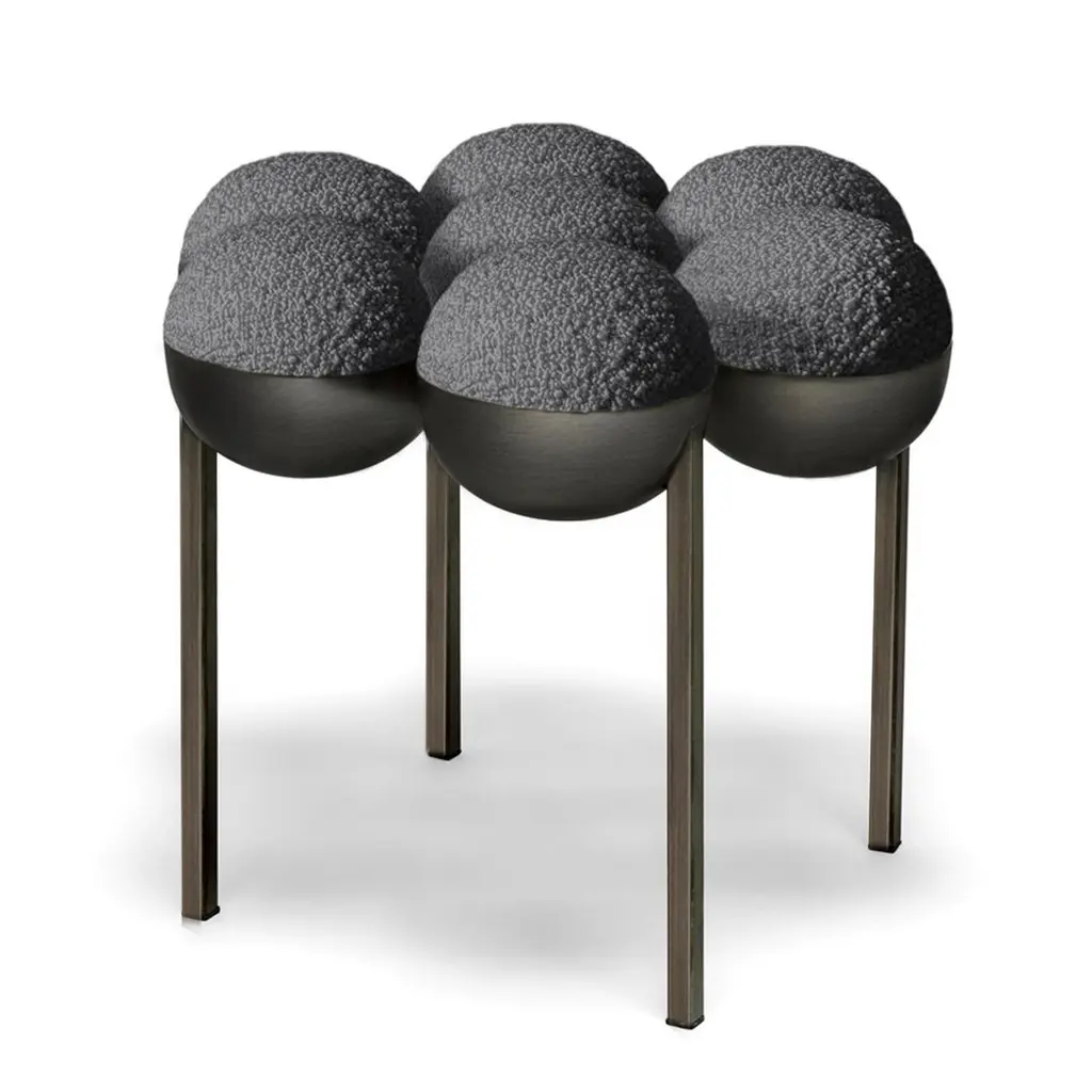 Saturn Pouffe Small, Modern, Sculptural, Bronze Frame And Grey Boucle