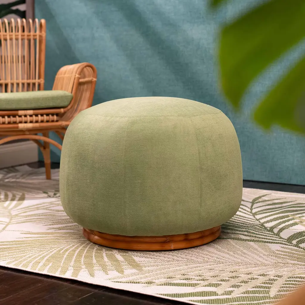 The Selva Pouf embodies the essence of the Jungle Revival collection, celebrating the authentic beauty of nature through meticulously crafted seating. Featuring a unique organic shape, this pouf combines a wooden structure with a rubberized finish and a base made from cane, offering both durability and style. The design highlights the fusion of tradition and modern aesthetics, making it a timeless addition to any interior space. This piece showcases natural textures and refined details that transform environments into serene oases of style and authenticity.