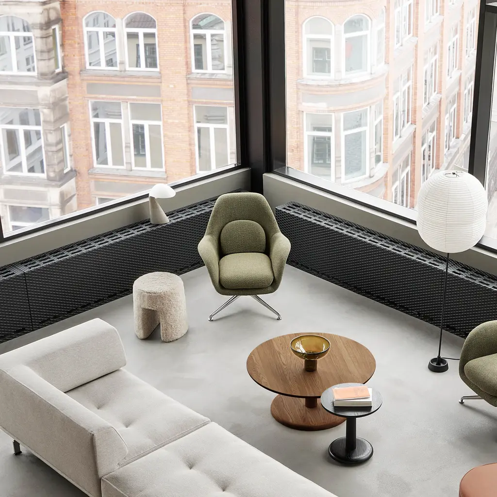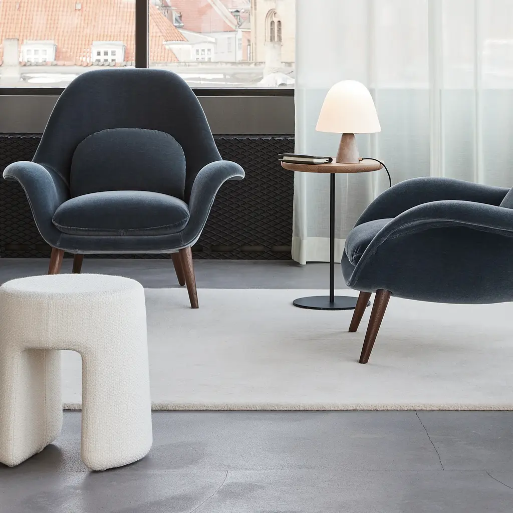 Space Copenhagen wraps Sequoia with textile or lambskin upholstery to give its sculptural curves a tactile kick. The pouf’s compact shape is visually leavened by its “tunnel” arched design, which also makes the piece easy to move around. Fully upholstered in the material of choice, it has an inner shell in molded polyurethane foam, reinforced with a steel frame and wooden base—making it a durable addition as an extra seat or footstool in both the home and public lounge areas.